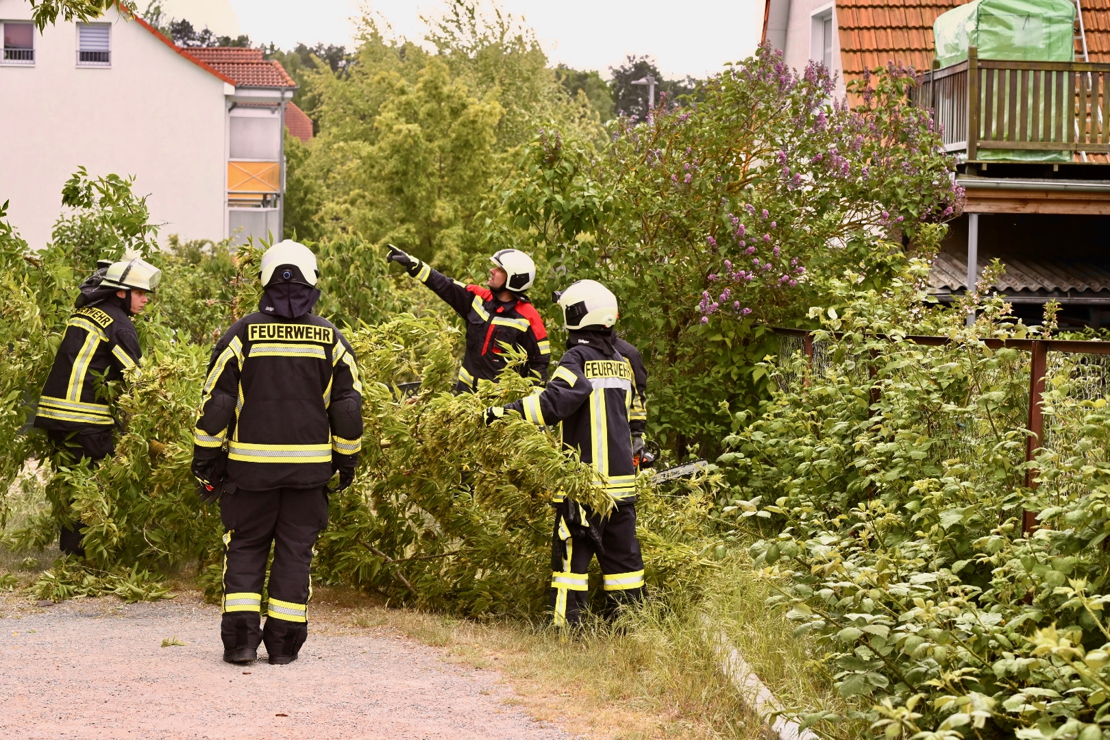 Lange Trockenheit und kräftiger Wind sind keine gute Kombination: An der Kita am Warener Kirschenweg ist heute am späten Nachmittag ein Baum umgefallen. Zum Glück wurde niemand verletzt. Warens Feuerwehrleute waren schnell zur Stelle und beräumten den Baum.