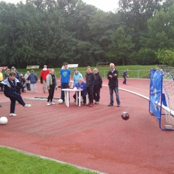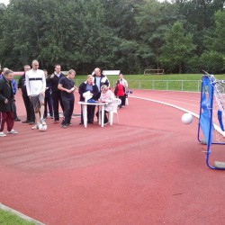 Für die Behinderten gehört das Sportfest im Müritzstadion zweifelsohne zu den Höhepunkten des Jahres. Aber auch für Betreuer und Mitarbeiter. Die haben heute wie schon in den Vorjahren gegeneinander Hockey gespielt. Diese Partie konnten die Betreuer mit 2:0 für sich entscheiden.
