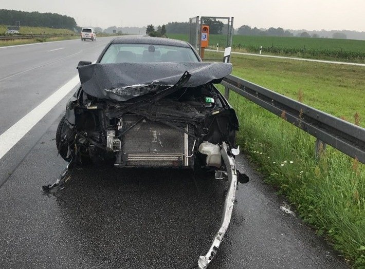 Ein 30jähriger BMW-Fahrer aus Berlin verursachte heute morgen gegen 8.10 Uhr einen Verkerhrsunfall auf der BAB 19, Höhe Anschlussstelle Röbel, in Fahrtrichtung Berlin. Zum Zeitpunkt des Unfalls herrschte Starkregen und er passte seine Geschwindigkeit nach Aussage der Polizei nicht den Witterungsverhältnissen an.