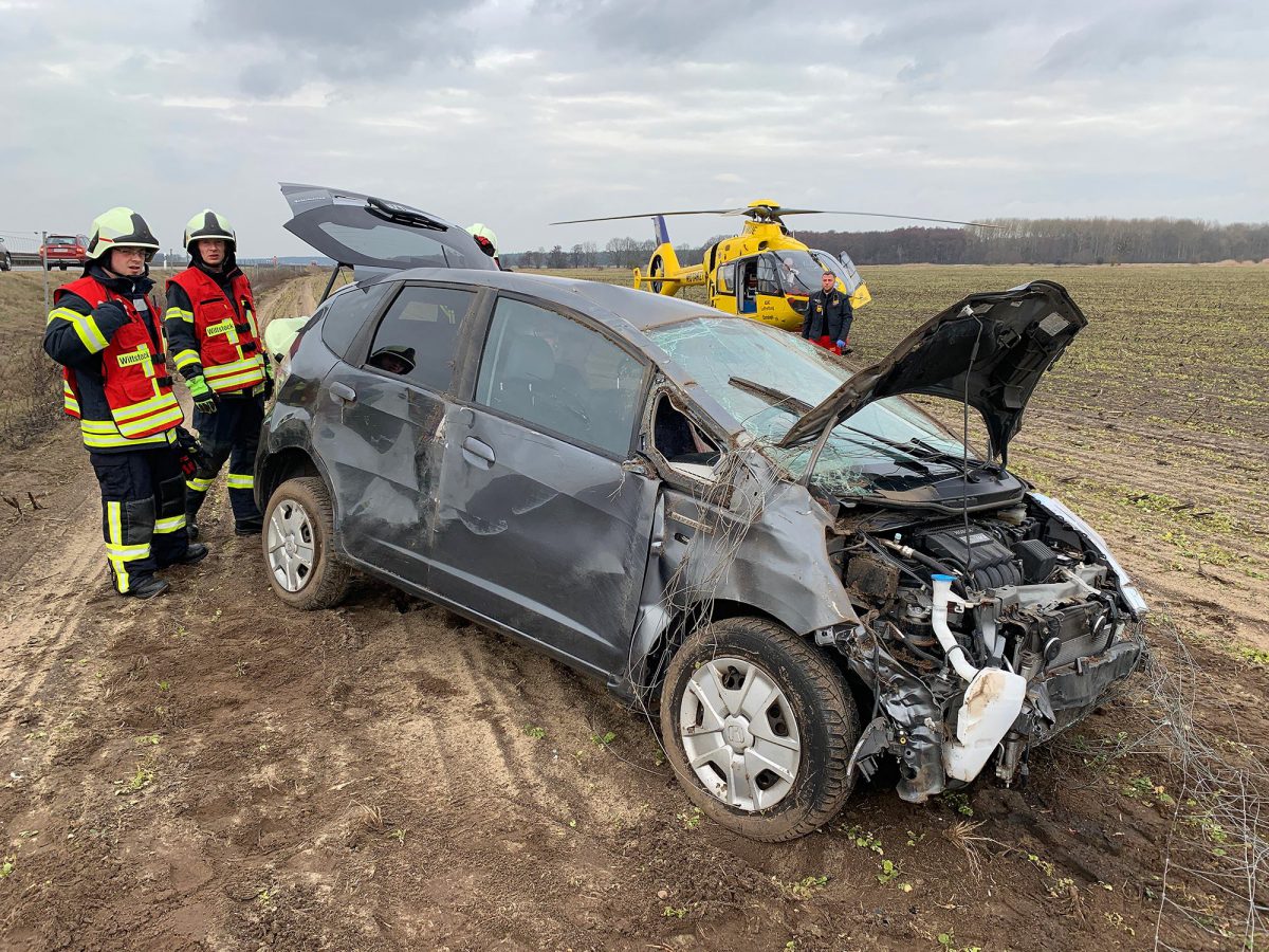 Ersten Aussagen zufolge wollte die 63-jährige Fahrerin nach einem Apfel greifen, der auf dem Beifahrersitz lag. Dabei verlor sie die Kontrolle über ihr Fahrzeug und flog von der Autobahn, teilte die Autobahnpolizei Walsleben mit.