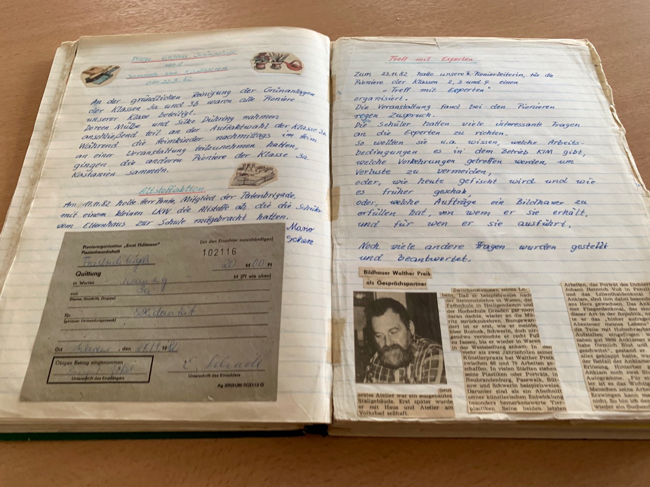 Im dortigen Fundus gibt’s beispielsweise ein „Gruppenbuch“ aus den 80-er Jahren, das wegen der aus heutiger Sicht „niedlichen“Passbilder zunächst für viel Gelächter bei den Nachwuchs-Geschichtsforschern sorgte, in dem sich aber beispielsweise auch ein Beitrag über einen Besuch bei Walther Preik findet.