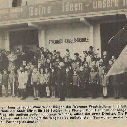 Der Bau der Schule hat damals übrigens 2,273 Millionen Ostmark gekostet, die große Sporthalle, die 1971 in Betrieb ging, noch einmal 2,017 Millionen Euro. Interessante Zahlen – gerade auch in Anbetracht der aktuellen Diskussion um die Sanierung von Warener Schulen.