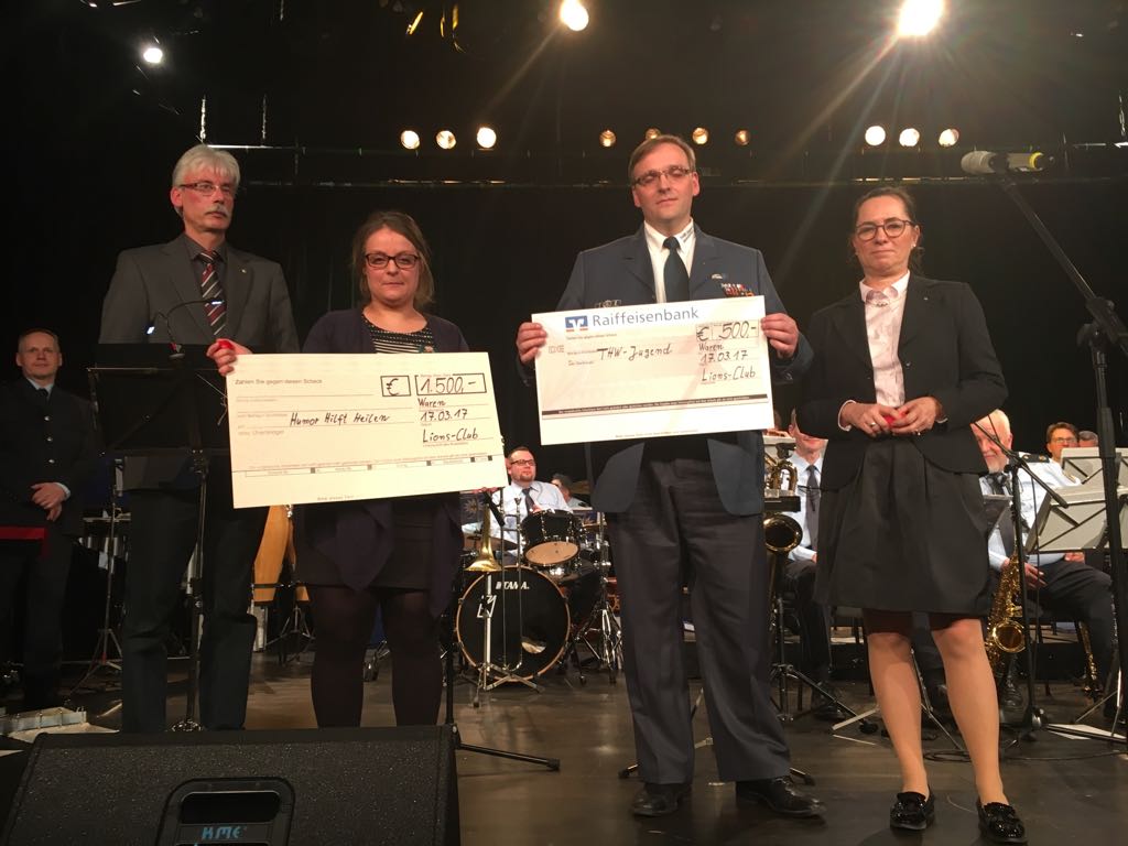Der diesjährige Erlös des heutigen Benefizkonzertes, organisiert vom Lionsclub Waren/Röbel, ging für die Kinder und Jugendarbeit an das THW Waren sowie an das Projekt „Humor hilft heilen“.