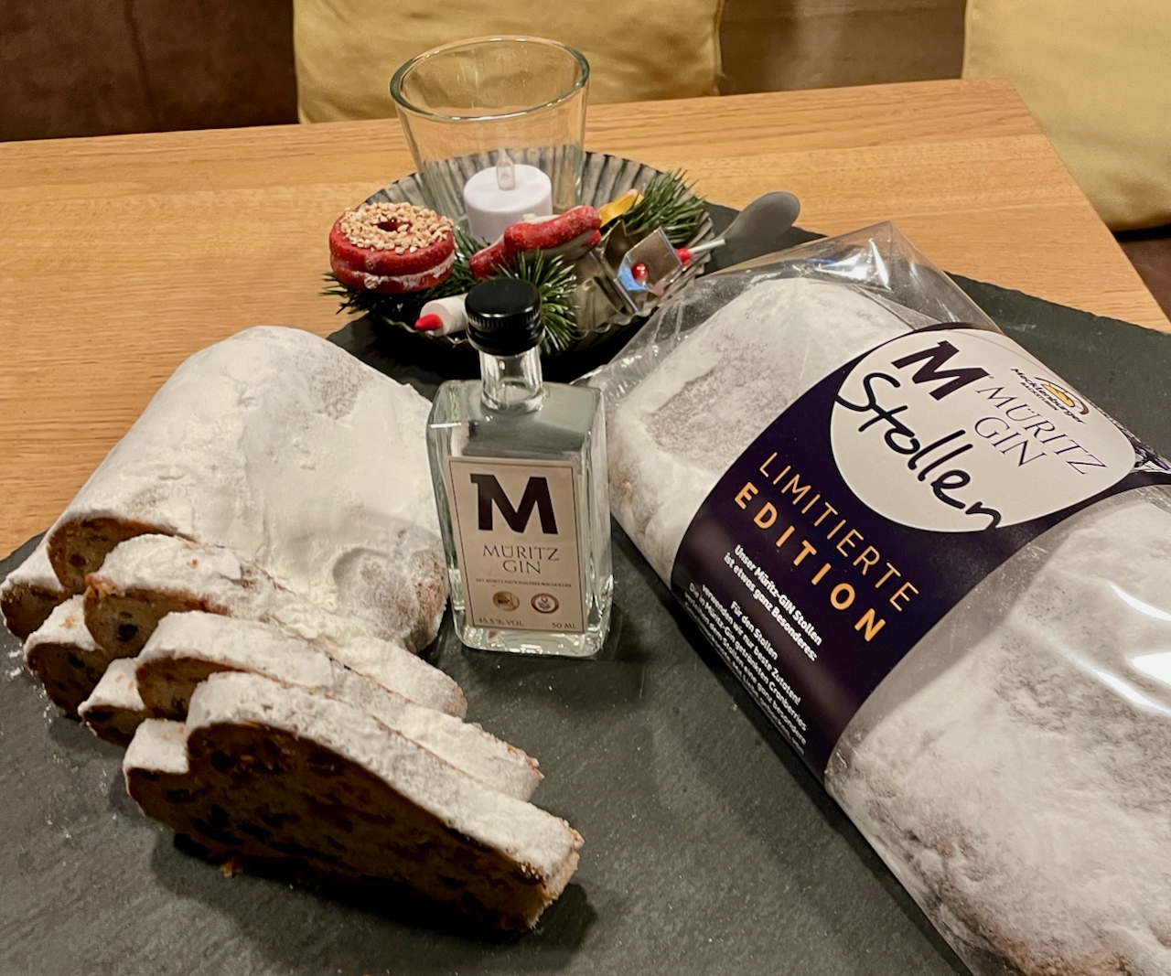 Ein Stück Stollen abschneiden und dann Prost! Der beliebte Müritz Gin, seit fünf Jahren auf dem Markt und mehrfach ausgezeichnet, gibt jetzt auch einem Weihnachtsstollen einen ganz besonderen Geschmack: Mit der Mecklenburger Backstuben GmbH und der Warener Genusswunder GbR machen nämlich zwei regionale Erzeuger gemeinsame Sache. Ab sofort liegt der „Müritz Gin-Stollen“ in den Filialen der Backstuben, allerdings in limitierter Auflage. Und in diesem Stollen ist einiges anders als in der klassischen Variante.