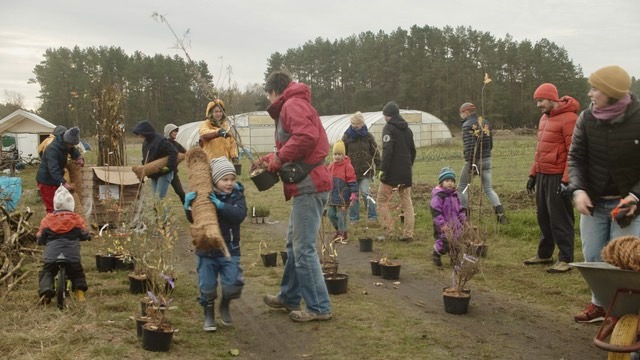 Mehr als 30 Bäume und Sträucher haben Mitglieder des „Fördervereins SoLaWi Klein Trebbow e.V.“ und Mitbauern der Solidarischen Landwirtschaft am Wochenende gepflanzt. Damit schufen sie den Grundstock für den ersten Neustrelitzer Waldgarten. Auf der Wiese von etwa 2000 Quadratmetern Größe in der Nähe von Klein Trebbow wird in zehn bis zwanzig Jahren ein Garten gewachsen sein, der einem natürlichen Wald ähnelt, der Tieren Lebensraum bietet und zugleich den Menschen Früchte und Pilze für die Ernte zur Verfügung stellt.