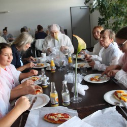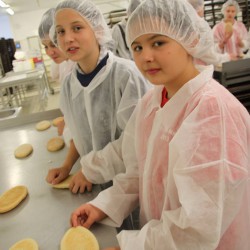 Bei den Mecklenburger Backstuben haben die Mädchen und Jungs heute zuerst einiges über das Unternehmen erfahren, ehe es für sie in die Produktion ging. Zuvor sorgte aber das „Verkleiden“ für allgemeine Belustigung. Denn ohne Kittel und Kopfbedeckung durfte sich natürlich niemand den großen Öfen und Teigschüsseln nähern. Besonders viel Spaß hatten die Schüler beim Belegen ihrer Pizzazungen. Die konnten sie dann zum Mittag verputzen. „Das war wirklich ein erlebnisreicher Tag bei den Backstuben“, sagte Ute Schmidt.