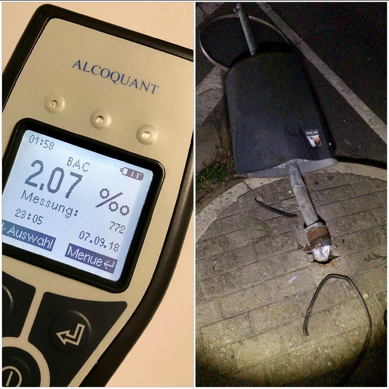 Ein erster Alkoholtest vor Ort ergab einen Wert von 2,07 Promille. Die Frau musste mit zur Blutentnahme.