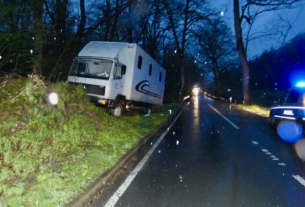 Ein betrunkener Lastwagenfahrer ist gestern Abend bei Vollrathsruhe mit seinem Fahrzeug von der Straße abgekommen und hat einen Schaden von rund 21 000 Euro verursacht. Der Lastwagen touchierte eine Leitplanke und blieb in einem Sandhaufen stehen.