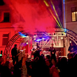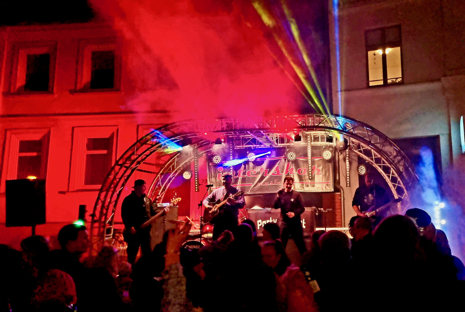 Musikalisch wurde den Gästen ebenfalls viel geboten: Auf zwei Bühnen traten regionale Künstler auf und sorgten für eine festliche Stimmung. Der „Malchower Jung“ Martin Goldenbaum, mittlerweile ein gern gesehener Gast in seiner Heimatstadt, begeisterte das Publikum mit seinen Liedern. Besonders emotional war das Comeback der Band „Intershop“, die nach einer mehrjährigen Pause erstmals wieder auftrat. Ihre Rückkehr auf die Bühne war ein Höhepunkt des Abends, und die Besucher sangen und tanzten begeistert mit.