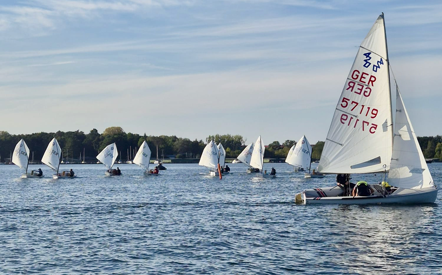 Besonders spannend war das Blaue Band der Kinder und Jugend, an dem 16 junge Segler, in den Klassen Optimist, ILCA, 420er, teilnahmen. Unter der Wettfahrtleitung von Heike Ahrent konnten vier Wettfahrten bestritten werden.
