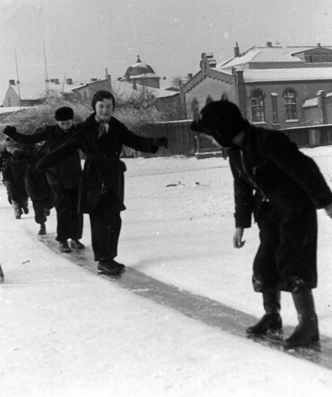 Wie wär’s mit einer Rutschpartie auf dem Schulhof des heutigen Warener Gymnasiums?
