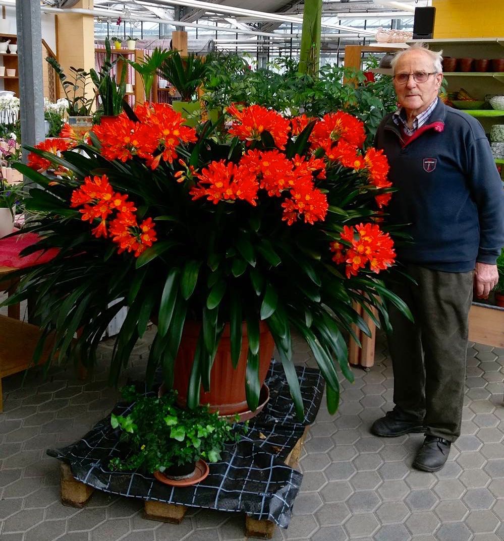 Die Klivie blüht jetzt etwa vier Wochen – vorausgesetzt natürlich, sie wird gut gepflegt. Aber darauf passt Opa Wöllert schon auf.