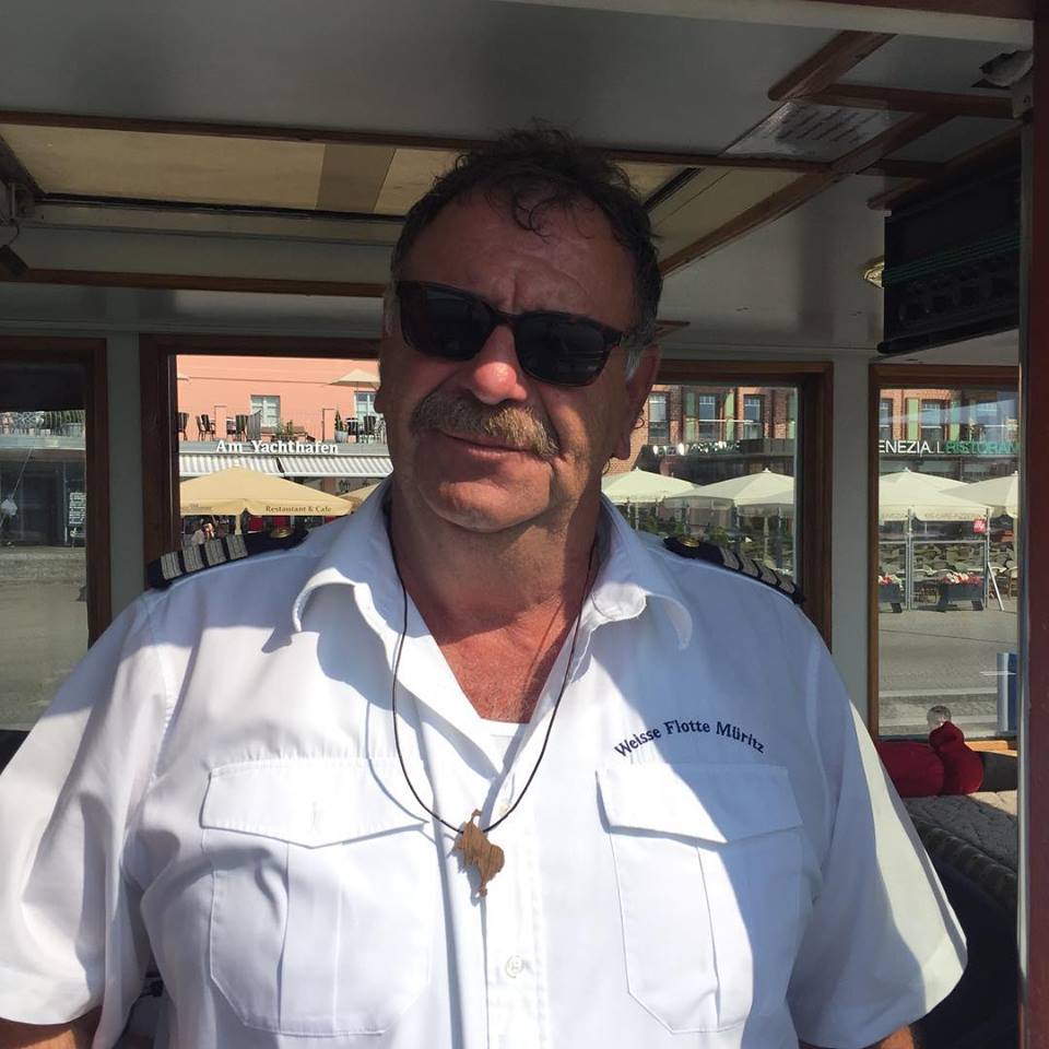 Käpt’n Bodo – er steuert die „Europa“ und ist bekannt für seine flotten Sprüche – jetzt mit exklusiver Müritz-Kette. Die gab‘s als Dankeschön für eine lustige Fahrt zum Kindertag.