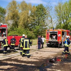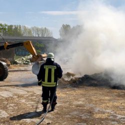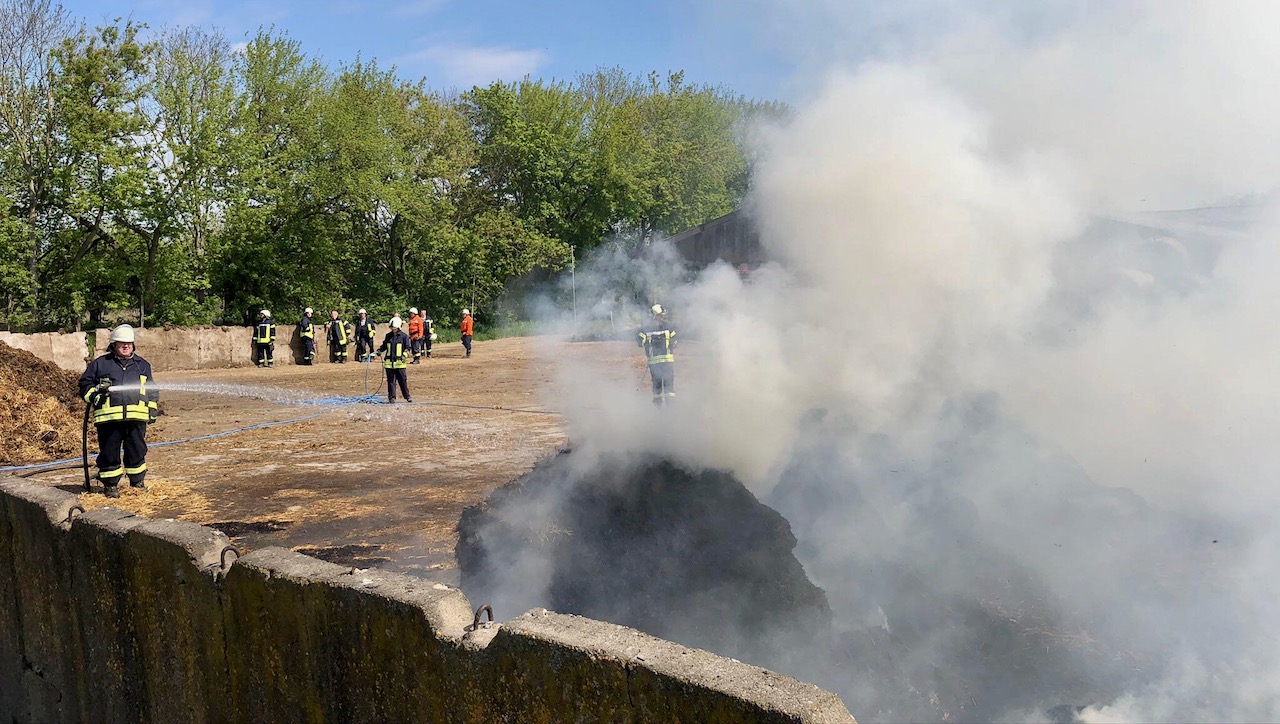 Dem schnellen Eingreifen der Wehren sei es zu verdanken, dass ein angrenzender Stapel Strohballen und die verpachteten Rinderställe nicht auch in Flammen aufgingen, was bei der vorherrschenden Trockenheit schnell hätte passieren können.