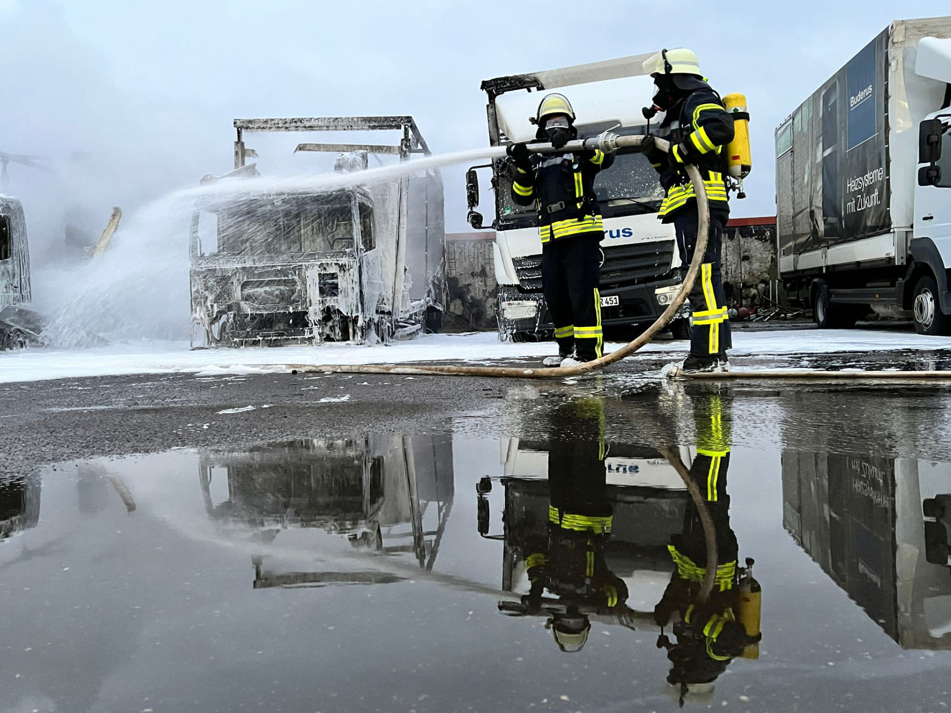 Ein Brand auf einem Speditionsgelände in der Ortschaft Rossow bei Friedland hat am frühen Sonntagmorgen einen Schaden von rund 160.000 Euro verursacht. Nach bisherigen Erkenntnissen wurde der Brand durch einen technischen Defekt in einem Lastwagen ausgelöst. Danach griff das Feuer auf einen weiteren Lkw über, so dass beide komplett ausbrannten. Durch die starke Hitzeentwicklung wurden zwei weitere Lastwagen beschädigt. Durch das schnelle Einschreiten der Feuerwehr konnte der Schaden begrenzt und ein Übergreifen auf die übrigen Lastwagen verhindert werden. Menschen wurden nicht verletzt.