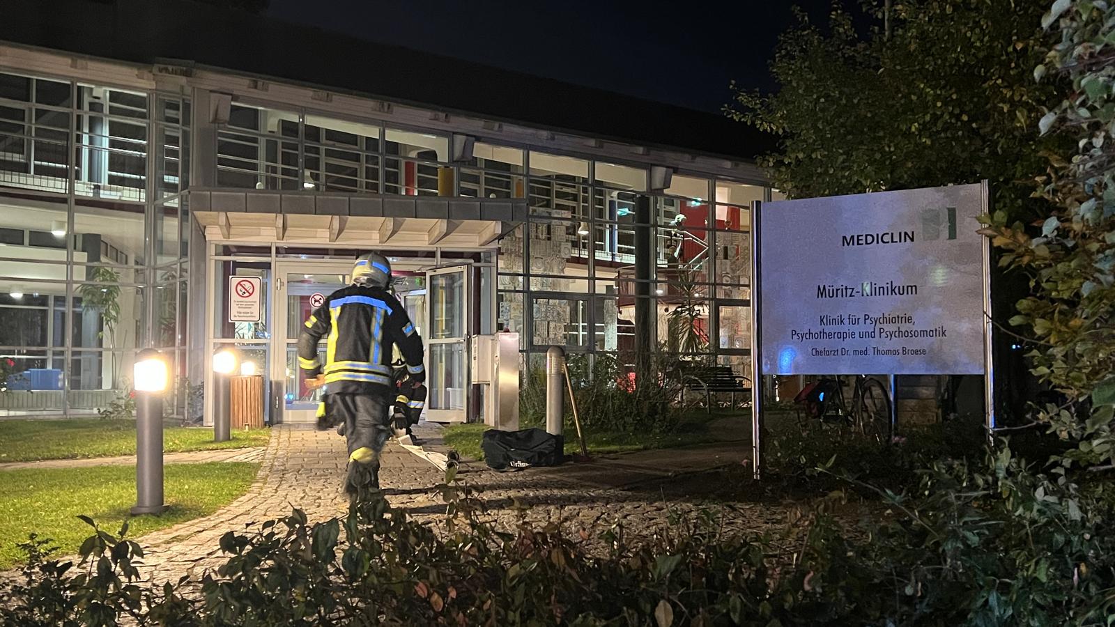 Großeinsatz heute Abend für die Feuerwehr in Röbel: In einem Patientenzimmer der MediClin-Klinik für Psychiatrie, Psychosomatik und Psychotherapie war ein Feuer ausgebrochen. Wie sich herausstellte, brannten eine Matratze und ein Regal. Das Personal der Klinik hatte die Patienten der betoffenen Station bereits vor dem Eintreffen der Feuerwehr vorbildlich evakuiert, niemand wurde verletzt. Da die Station durch das Feuer ziemlich verraucht wurde, sieht es so aus, als wenn die Patienten vorerst anderweitig untergebracht werden müssen.