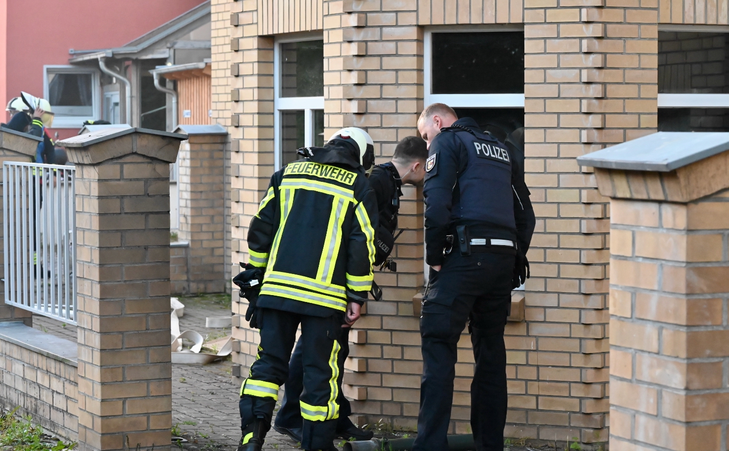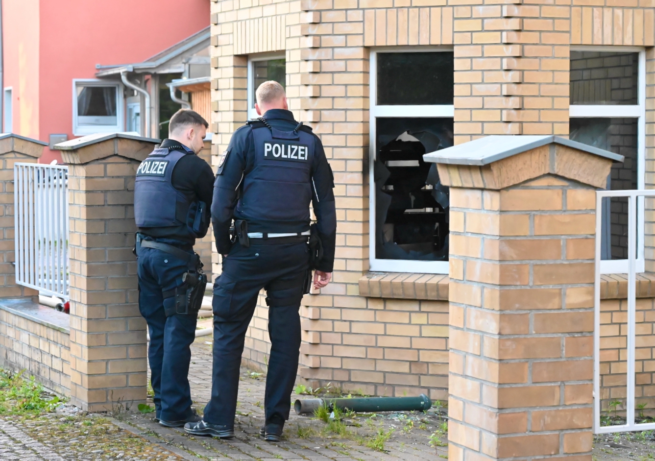 Brandstiftung kann derzeit nicht ausgeschlossen werden, zumal ein Eisenpoller, der vor einem zerborstenen Fenster im Erdgeschoss auf der Rückseite zur Mauerstraße lag, die Aufmerksamkeit der Polizisten auf sich zog.