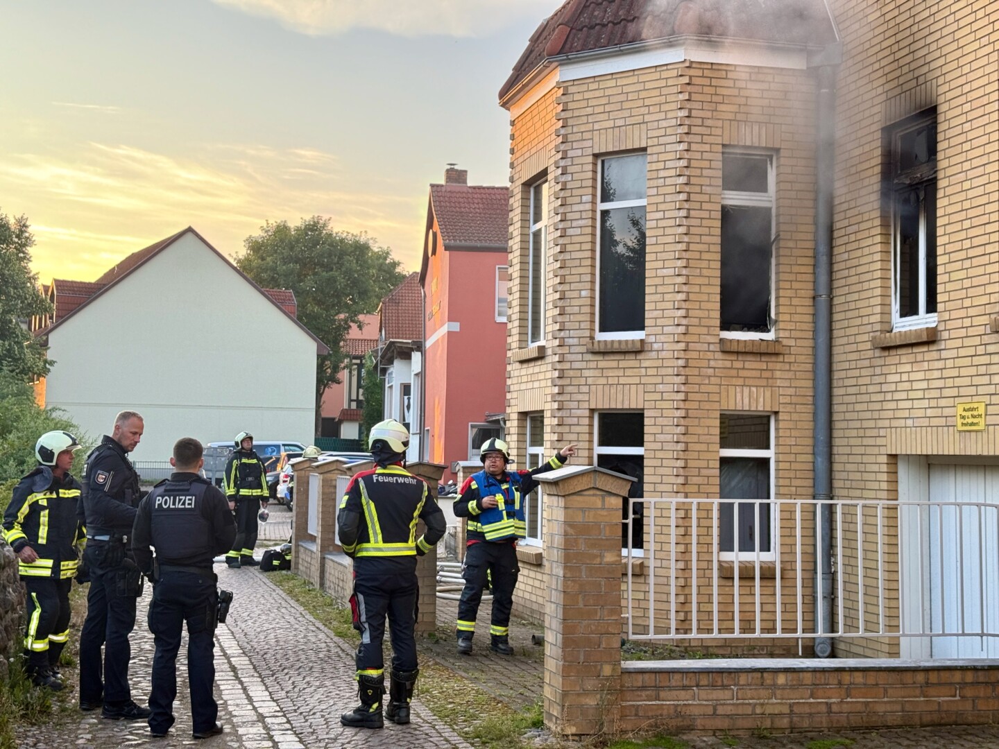 Im Haus befinden sich ein Schuhgeschäft und ein Buchladen, oben drüber mehrere Wohnungen. Deren insgesamt 10 Bewohner konnten sich selbst rechtzeitig in Sicherheit bringen. Sie standen teilweise nur leicht bekleidet in der Geschäftsstraße, eine Mieterin hatte ihre Katze im Korb dabei. Verletzt wurden ersten Erkenntnissen zufolge niemand. Die Mieter wurden durch das DRK betreut.