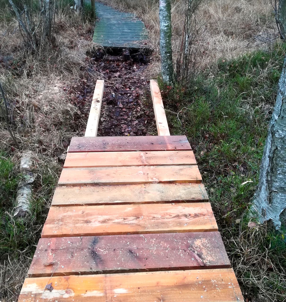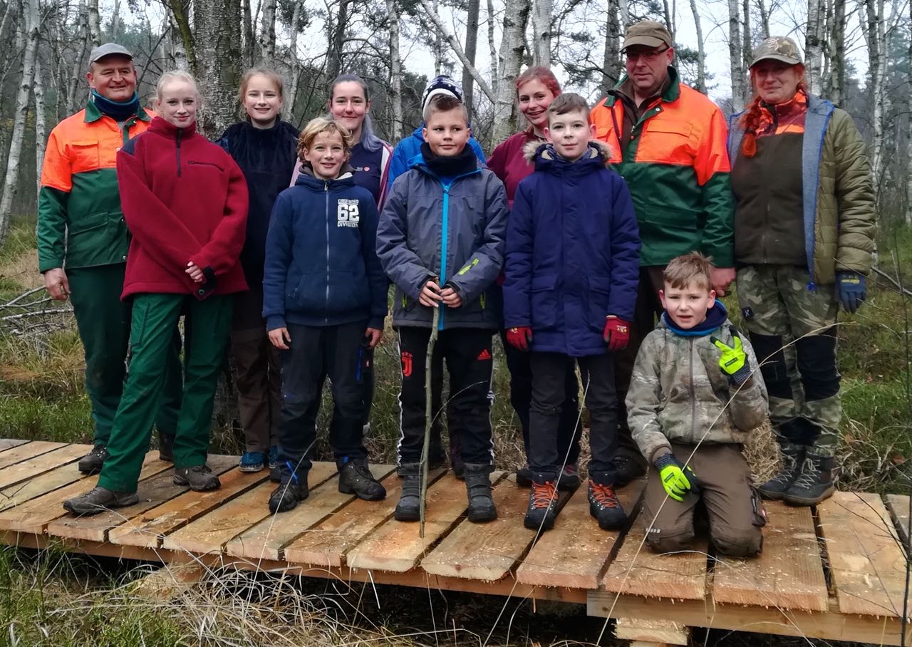 Der nördlich des Sees verlaufende zweite Abschnitt des Moorsteges wird gerade saniert. Hierzu haben Junior-Ranger und Volunteer-Ranger ein Wochenende lang den alten Steg abgerissen und einen neuen Holzsteg gebaut. Unter Leitung von Uwe Lemke und Detlef Drews waren die Kinder und Jugendlichen voller Tatendrang und Arbeitsfreude bei Abriss und Neubau dabei.