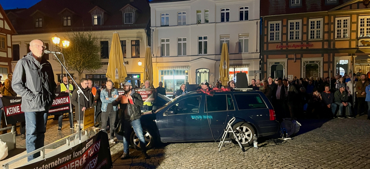 „Ich kann die Sorgen und Ängste der Menschen verstehen. Wir sitzen alle in einem Boot. Im Rahmen unserer Möglichkeiten setzen ich mich gemeinsam mit den Stadtvertretern für Sie, unsere Bürger, ein. Aber unsere Möglichkeiten sind begrenzt“, so Norbert Möller, der den Organisatoren der montäglichen Demos gleichzeitig für ihren Einsatz dankte. Und er wiederholte, dass man die Montagsdemos von 1989 nicht mit den heutigen vergleichen könne. Demos, wie es sie heute überall gebe, seien damals so nicht möglich gewesen. „Wir sind für eine andere Sache auf die Straße gegangen“, sagte der Bürgermeister.