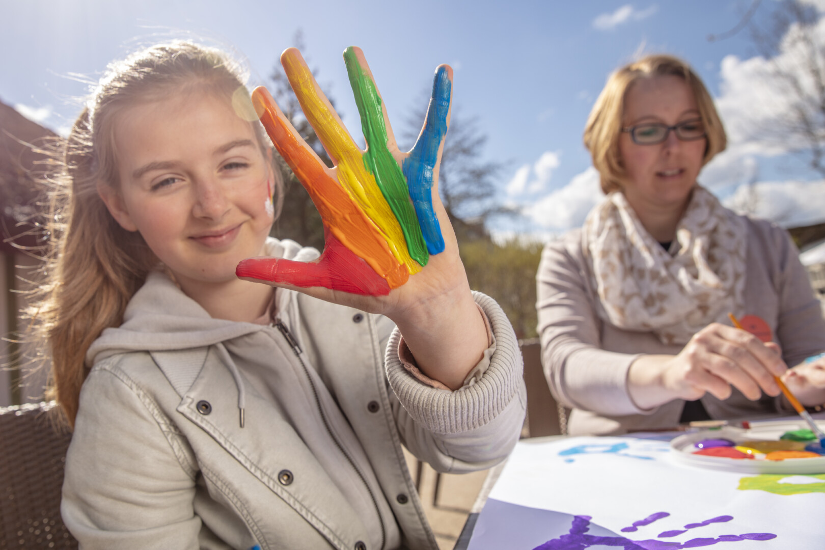 Kreative Köpfe finden im BEECH-Atelier ihren Platz: Beim Bemalen von Gipsfiguren oder Basteln im Mosaikstil entstehen kleine Kunstwerke. Ponyreiten über das Gelände macht den Tag perfekt.