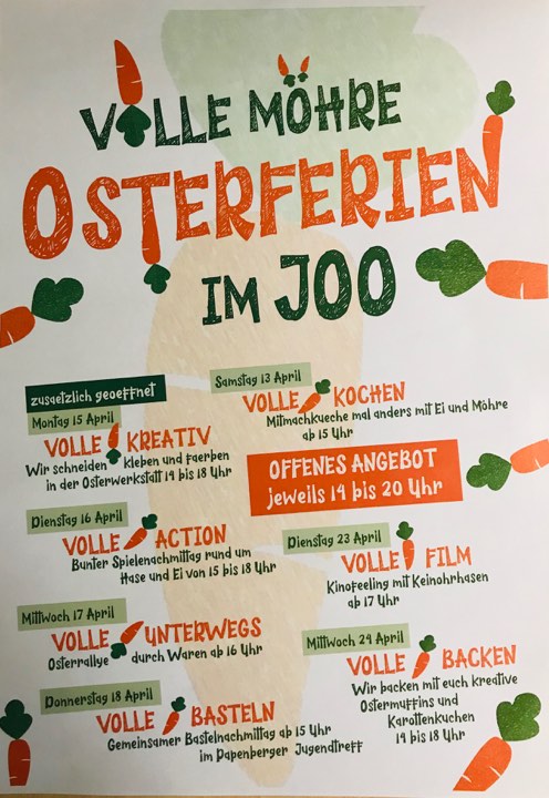 Die Mitarbeiter des Warener Jugendzentrums „JOO!“ haben für die kommenden Tage ein abwechslungsreiches Programm zusammengestellt.