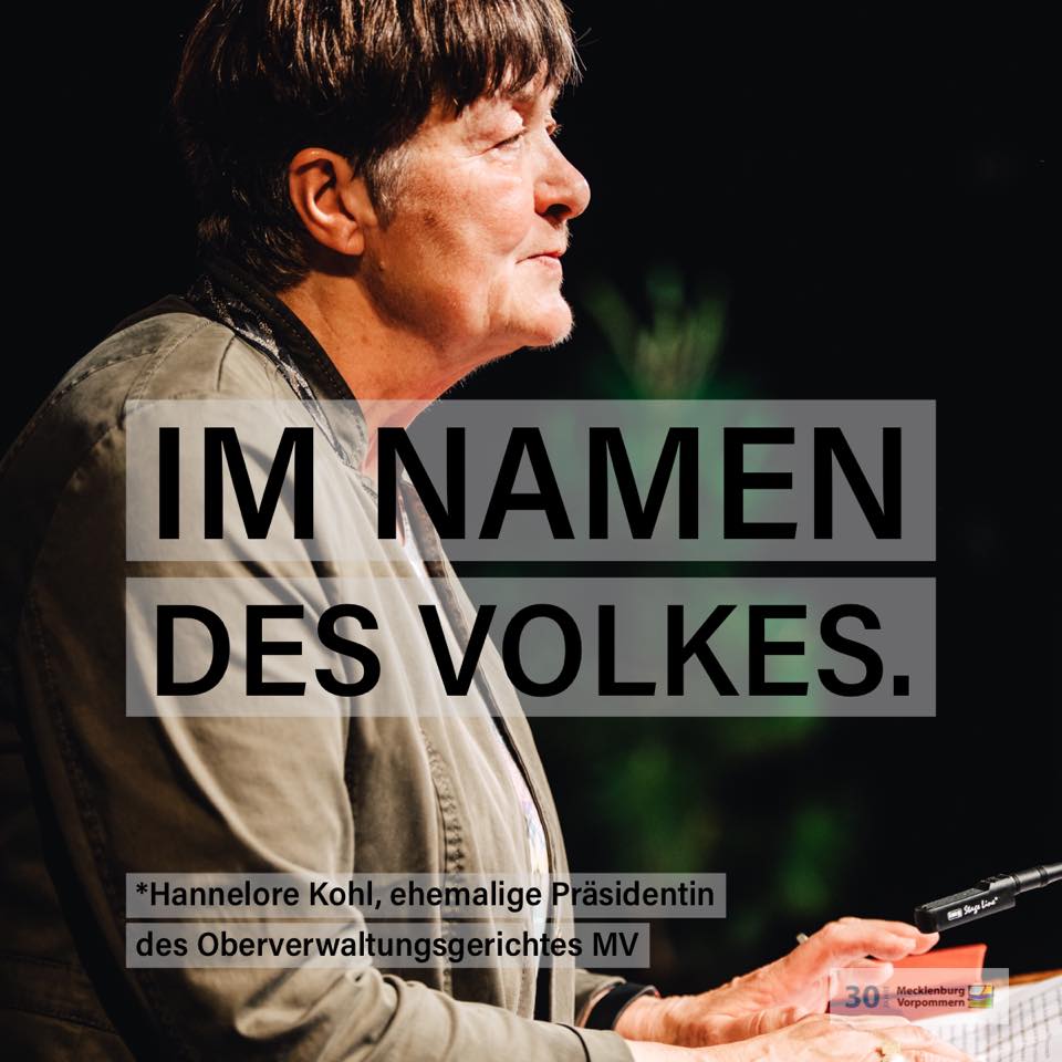 Hannelore Kohl, Jahrgang 1948, sei lange das Gesicht der Rechtsprechung im Land gewesen. Sie war von 1997 bis zum Eintritt in den Ruhestand 2013 Präsidentin des Oberverwaltungsgerichtes Mecklenburg-Vorpommern und damit die erste Frau an der Spitze eines deutschen Oberverwaltungsgerichtes. Von Ende Januar 2008 bis Ende Januar 2017 war sie außerdem Präsidentin des Landesverfassungsgerichtes. „In diesen hohen Ämtern hat sie Eigenschaften ausgeführt, die sich schon Sokrates für Richter wünschte: Höflichkeit, Weisheit, Vernunft und Überparteilichkeit. Dabei hat sie nie die Bodenhaftung verloren. Sie hat sich stets auf das besonnen, worauf unsere Gesellschaft wahrlich fußt: auf Demokratie und gesellschaftlichen Zusammenhalt“, lobt die Ministerpräsidentin.