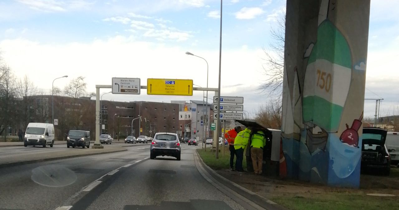 Vorsicht auf dem Schweriner Damm, hier werden ab sofort wieder unaufgefordert Bilder gemacht. Übrigens: Als ein Vorteil des Blitzeranhängers wird ja der geringe Personalaufwand genannt.