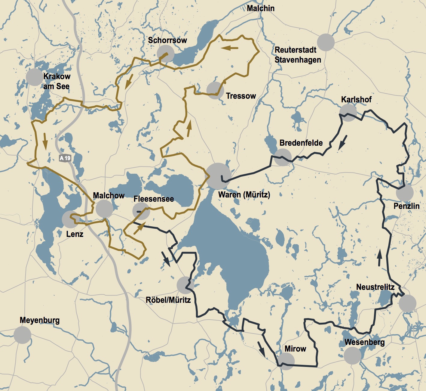 Und hier der Zeitplan sowie die beiden Etappen durch die Müritz-Region:
