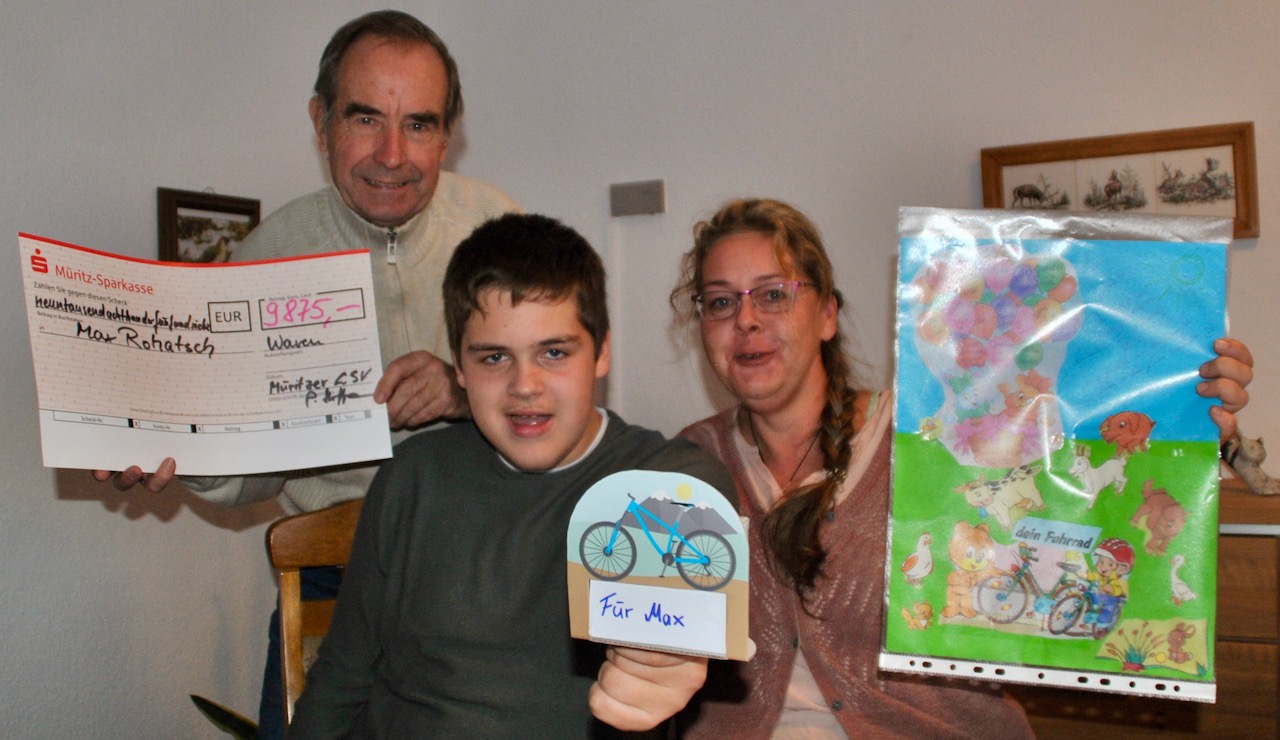 Davon lässt sich Max auch nicht vom derzeitigen ungemütlichen Wetter abhalten: Der 15-Jährige aus Groß Plasten besitzt seit kurzem ein Therapierad und ist damit am liebsten jeden Tag unterwegs. Zu verdanken hat der Junge das besondere Rad, das er aus gesundheitlichen Gründen benötigt, dem Müritzer LSV 04 um Peter Hoffmann und ganz vielen Spendern. Durch einen organisierten Herbstlauf sowie weiteren Spenden kamen am Ende knapp 10 000 Euro zusammen, um das außergewöhnliche Tandem zu kaufen.
