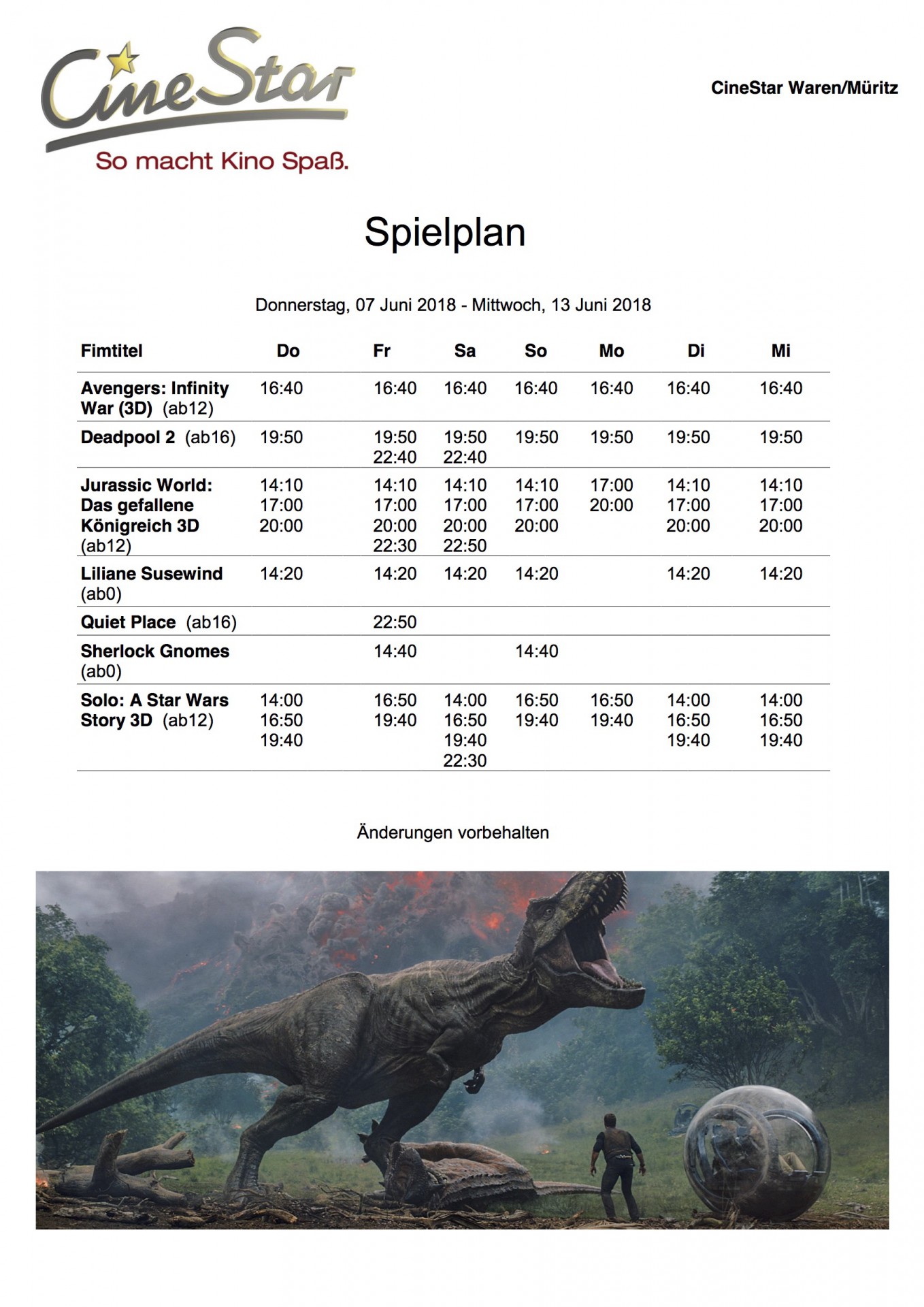 Hier das aktuelle Kinoprogramm für das CineStar in Waren mit „Jurassic World: Das gefallene Königreich“.