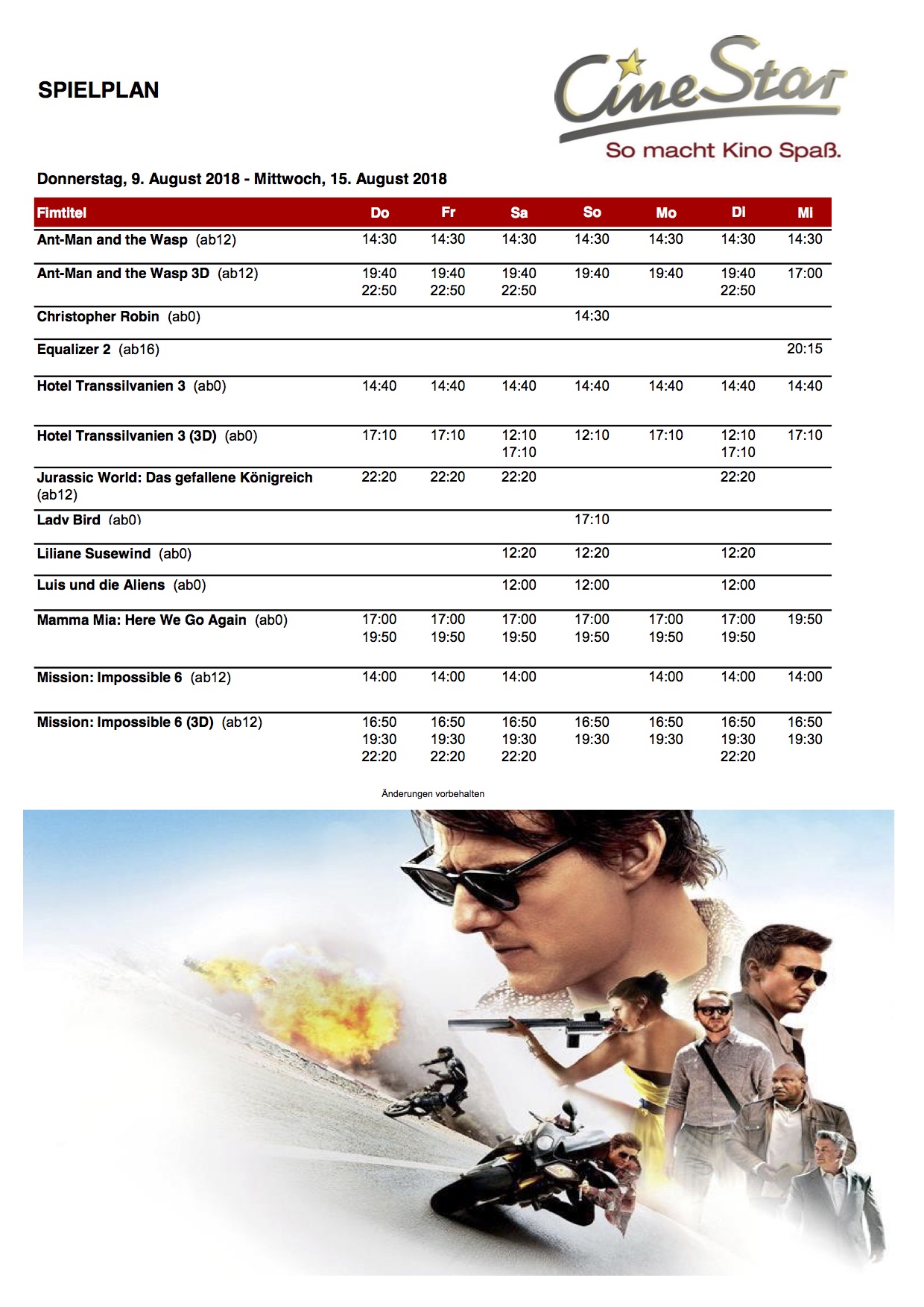 Das ab heute gültige Kinoprogramm des CineStar Waren mit folgenden Sondervorstellungen: