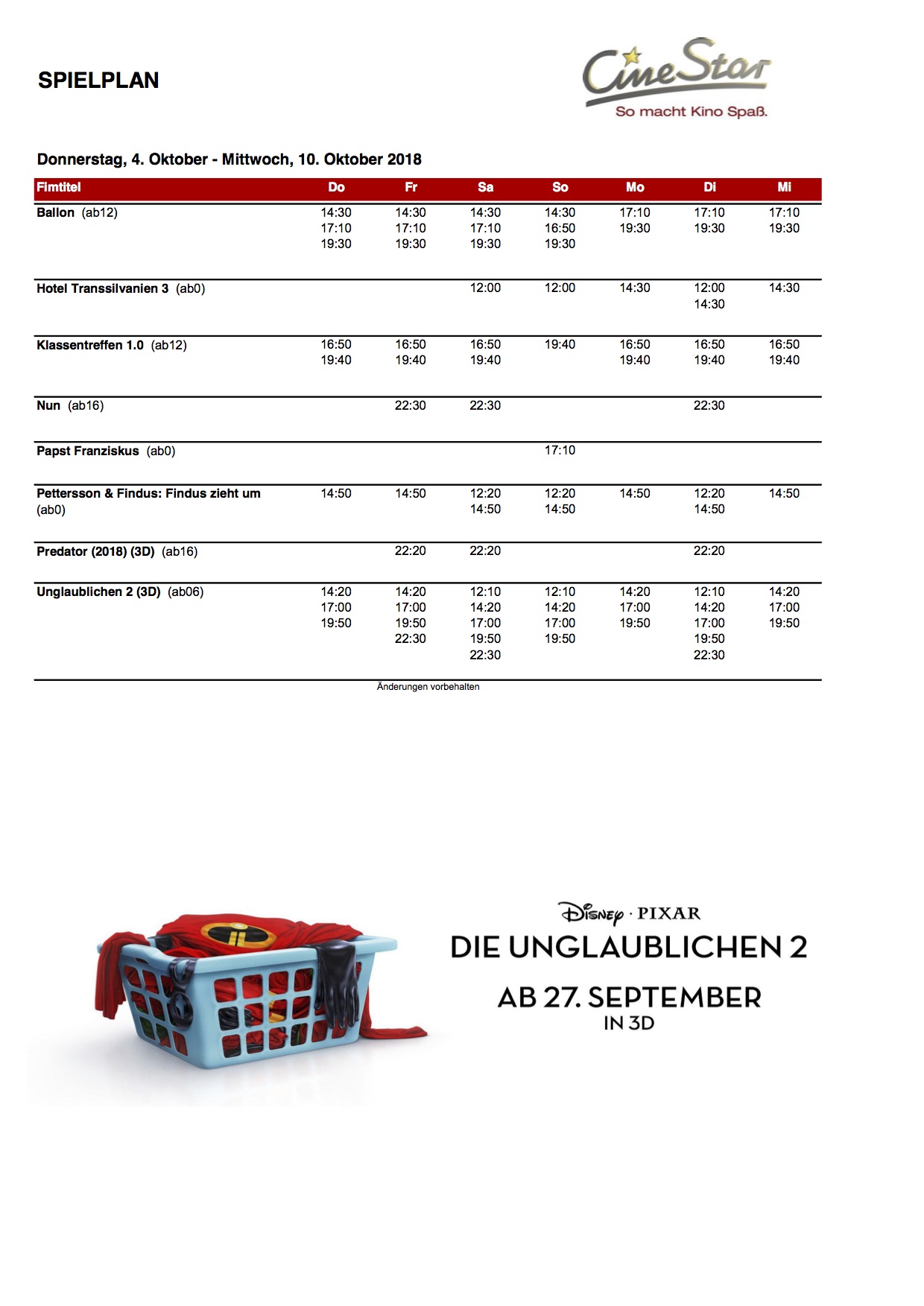 Das ab heute gültige Kinoprogramm für das CineStar in Waren: