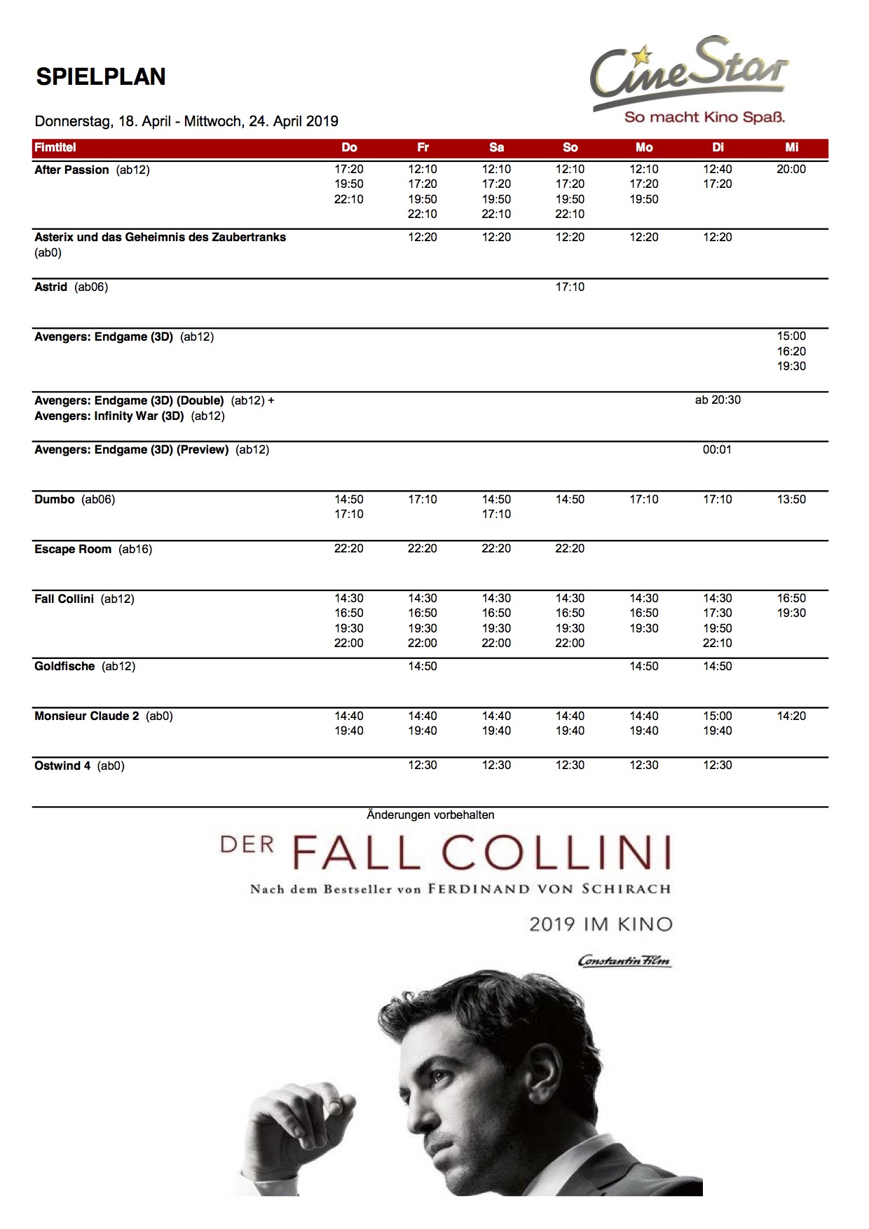 Das aktuelle Kinoprogramm des CIneStar Waren mit