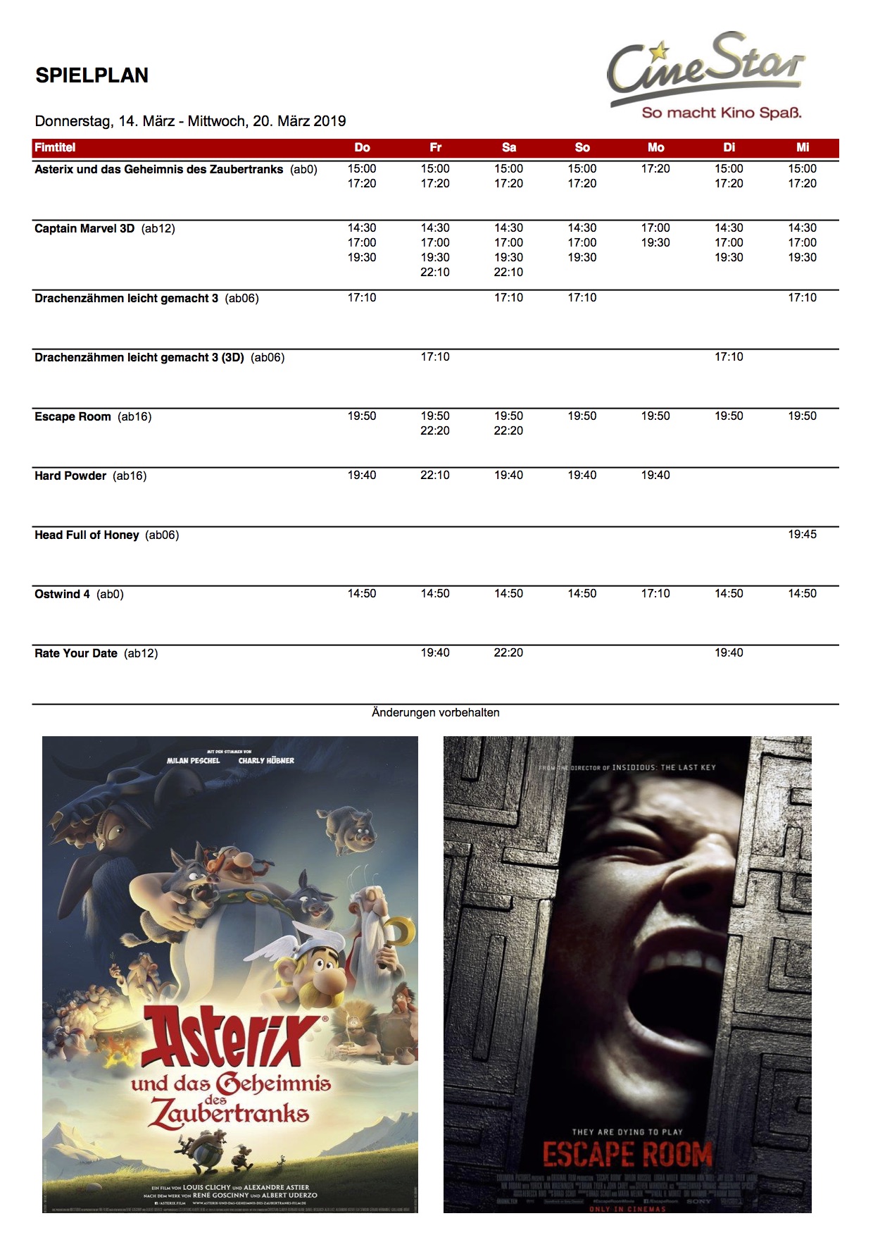Das ab heute gültige Kinoprogramm des CineStar Waren mit den Neustarts: