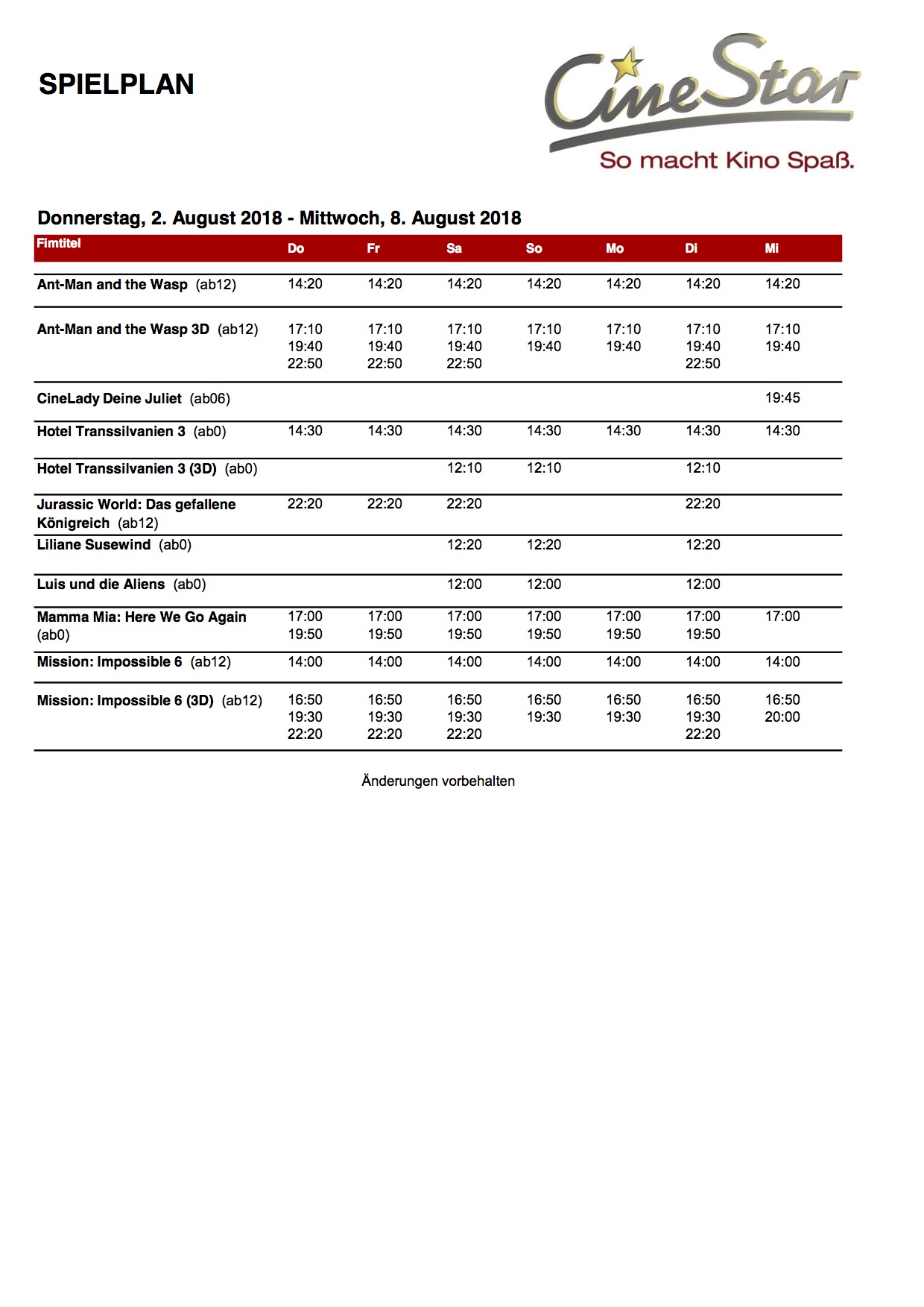 Das aktuelle Kinoprogramm ab morgen mit der Sondervorstellung: Mi. 1.8. CineLady „Deine Juliet“ 19.45 Uhr plus ein Glas Prosecco und eine Cosmopolitan