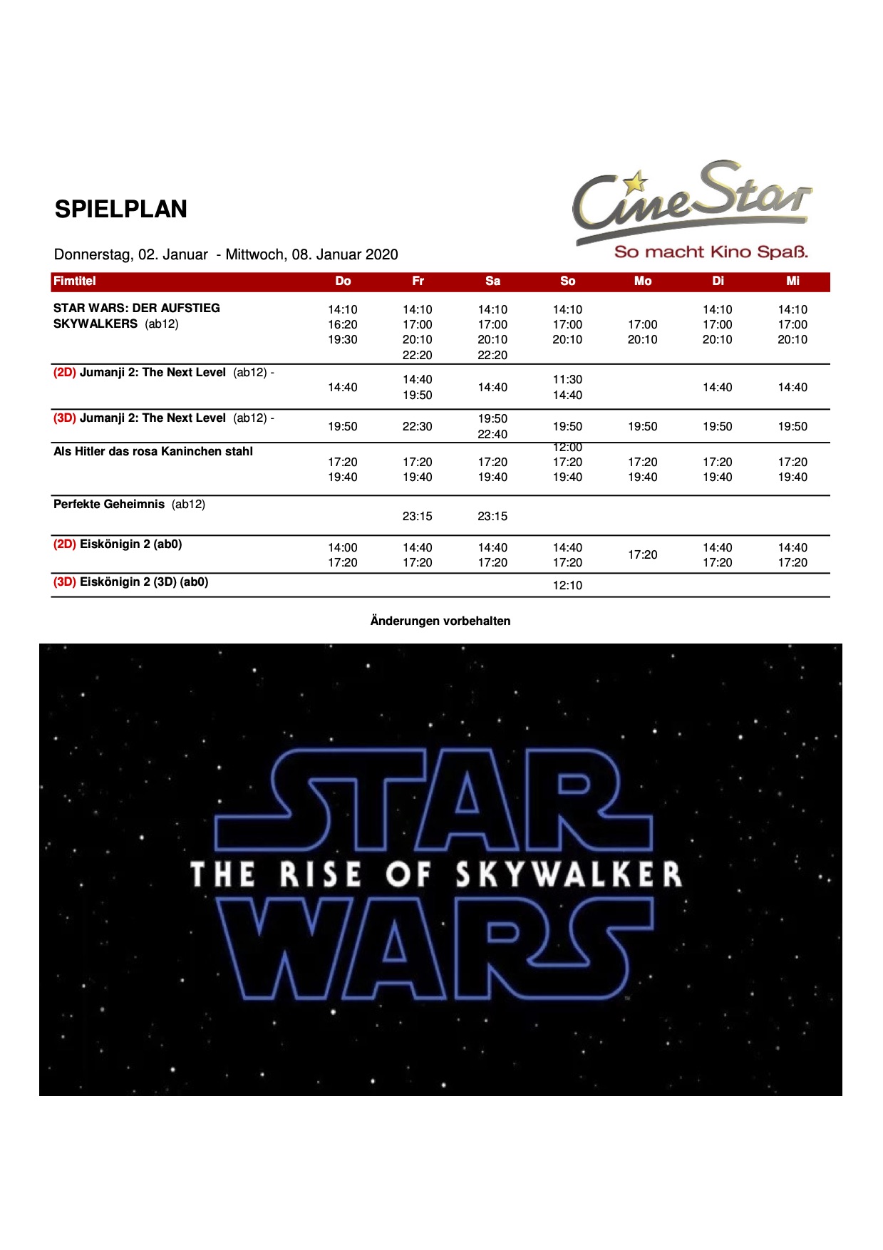 Hier der aktuelle Spielplan des CineStars: