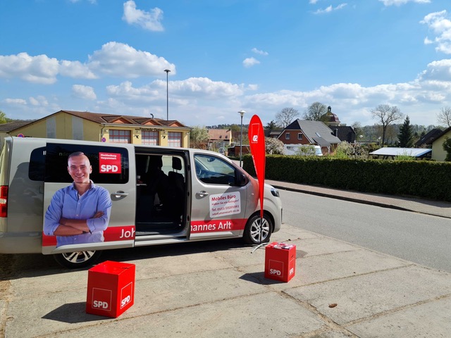 Die Parlamentsferien sind zu Ende. Und auch der SPD-Bundestagsabgeordneter Johannes Arlt ist wieder in Berlin. Aber der Bus mit dem mobilen Büro kommt trotzdem in die Müritz-Region. Wer den Abgeordneten auf der Sommertour verpasst hat, kann seine Anliegen trotzdem vorbringen. Denn das mobile Büro mit Jan Settegast tourt weiter durch den Wahlkreis. In dieser Woche steht der Bus am Dienstag, 6. September, von 12 bis 14 Uhr in Walow auf der Woldzegartener Chaussee in der Ortsmitte und von 15 bis 17 Uhr in Zislow auf dem Parkplatz an der Straße Zum Hafen.