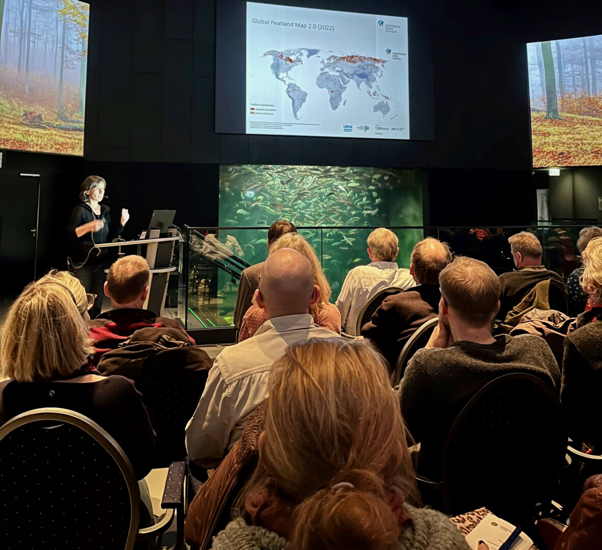 Dr. Franziska Tanneberger vom Greifswald Moor Centrum beleuchtete in ihrem Vortrag kritisch den Zustand der Moore weltweit und unterstrich die zentrale Aufgabe des Moorschutzes. „Das Wiedervernässen von Mooren und die Bewahrung dieser sensiblen Ökosysteme ist nicht nur für die Biodiversität von größter Relevanz, sondern auch als CO2-Senke. Weltweit verlieren wir derzeit jedes Jahr etwa 500.000 ha aktiv CO2-aufnehmende, nasse Moore“, so Tanneberger.