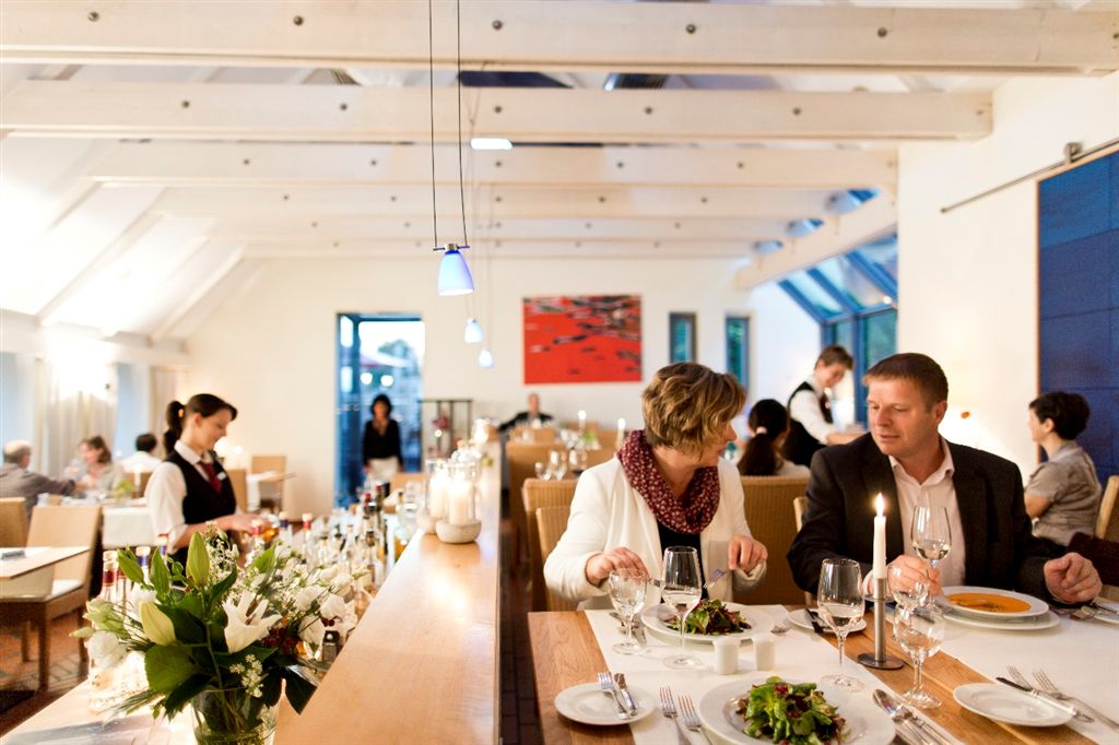 Einen italienischen Rotwein hat Restaurantleiterin Petra Röper dafür als begleitenden Wein ausgewählt. Die Crème Caramel mit frischen Beeren und hausgemachtem Pflaumensorbet rundet den Abend ab. Dazu wird eine süße Riesling Spätlese als Weinabschluss präsentiert.