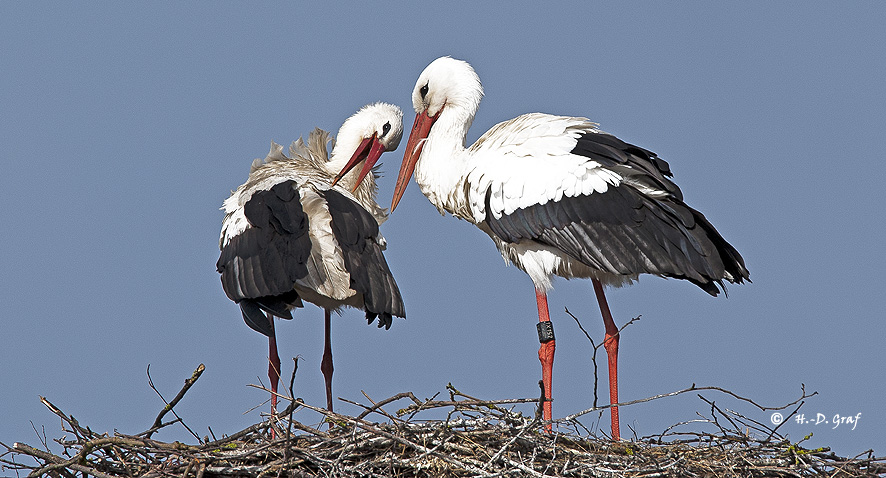 Endlich! Er musste sich ja auch wirklich sehr lange gedulden. Der Weißstorch, der es sich schon vor einigen Wochen in Lansen gemütlich gemacht und seither sehnsüchtig auf weibliche Gesellschaft gewartet hat, ist happy.