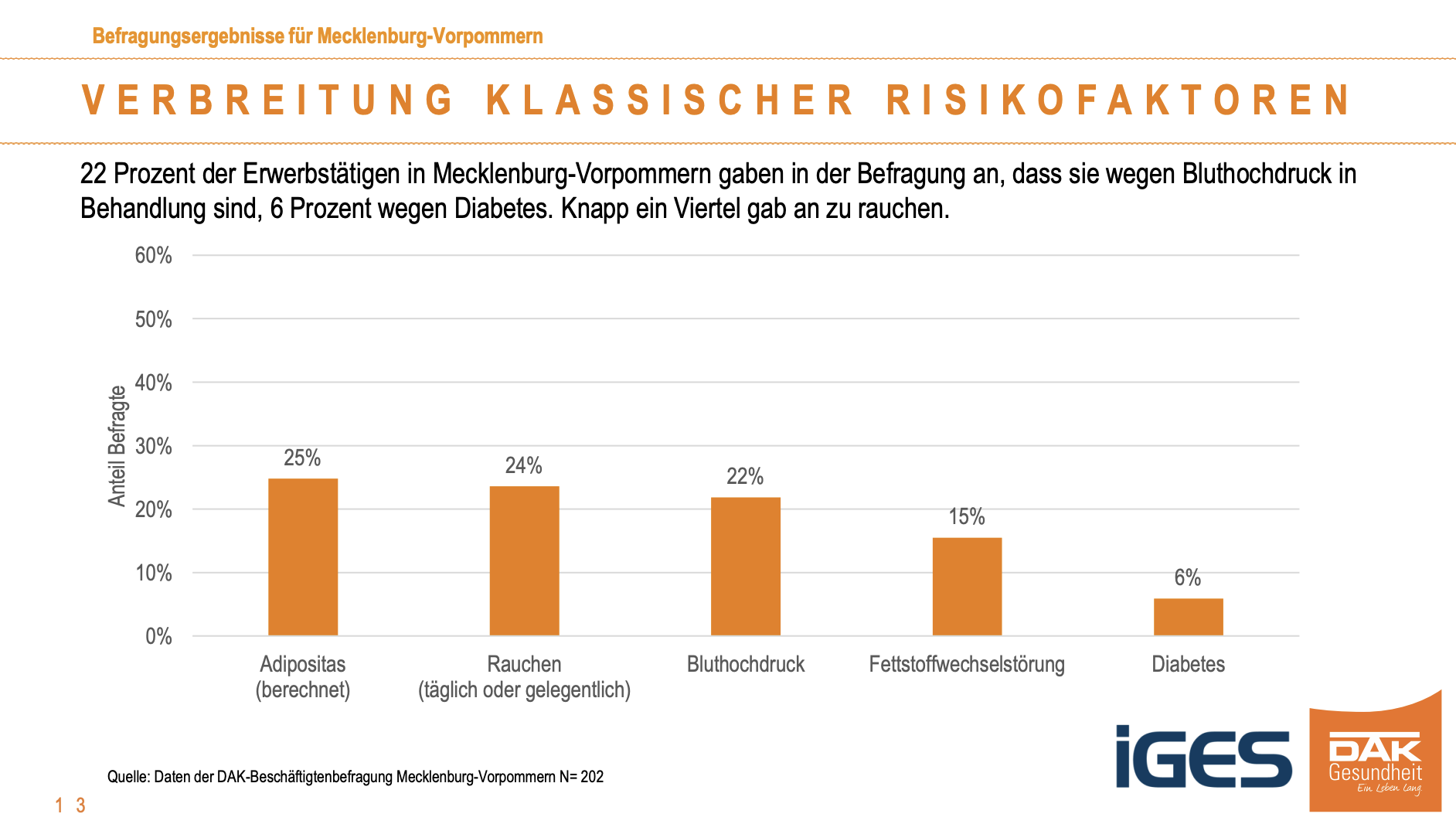 In Mecklenburg-Vorpommern sind die Fehlzeiten aufgrund psychischer Erkrankungen in den vergangenen zehn Jahren um 55 Prozent gestiegen. Psychische Erkrankungen wie Depressionen oder Ängste sind die zweithäufigste Ursache für eine Krankschreibung. Sie können auch körperliche Folgen haben. Laut DAK-Gesundheitsreport 2022 hat landesweit etwa jeder siebte Beschäftigte mindestens einen psychischen Risikofaktor für Herz-Kreislauf-Erkrankungen. Hochgerechnet auf die Erwerbstätigen haben damit über 100.000 Menschen in Mecklenburg-Vorpommern ein erhöhtes Herzinfarkt-Risiko durch Depressionen, Ängste oder Arbeitsstress. Die Betroffenen weisen auch vermehrt körperliche Risikofaktoren wie Rauchen, Bluthochdruck oder Adipositas.