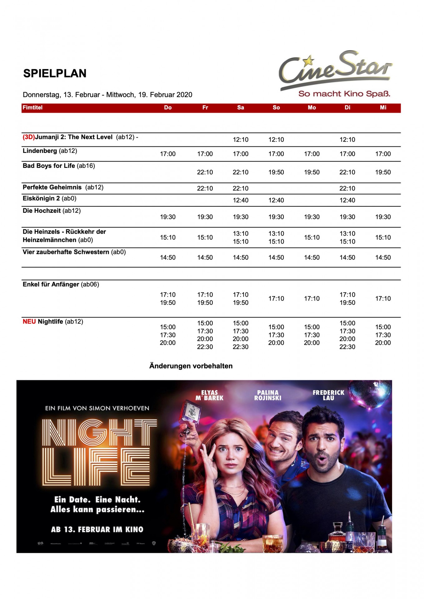 Und das läuft ab heute im CineStar Waren, inklusive Neustart „Nightlife“ – Ein Date. Eine Nacht. Alles kann passieren.