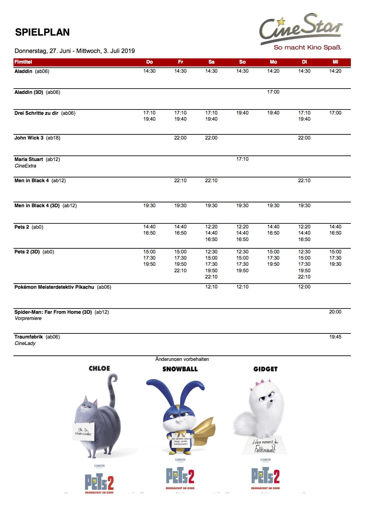 Der aktuelle Spielplan für das CineStar in Waren mit dem Neustart: