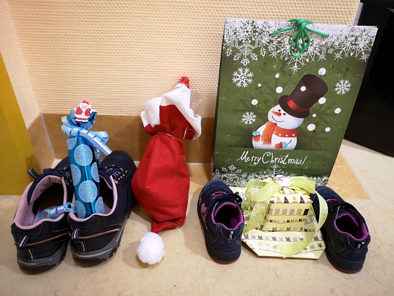 Denn die kranken Knirpse haben – wie zu Hause auch – ihre blank geputzten Schühchen vor die Zimmertüren gestellt und wurden nicht enttäuscht. Alle Schuhe und Stiefel waren am Morgen gefüllt.