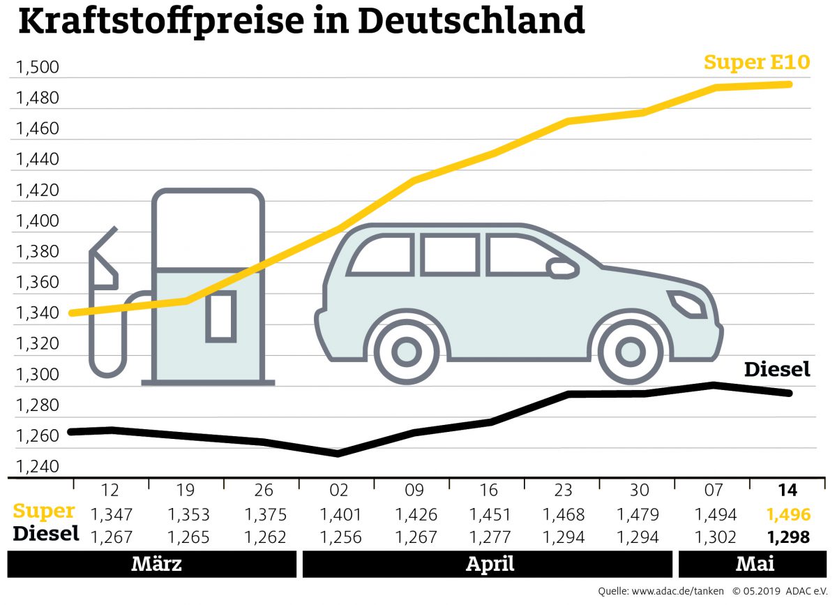 Die Preisdifferenz zwischen Diesel und Super E10 hat sich damit nach der Annäherung der beiden Sorten in den Wintermonaten wieder auf beinahe 20 Cent erhöht. Mit dem zehnten Preisanstieg in Folge bleibt Benzin in Relation zum aktuellen Ölpreis aber weiterhin teuer.