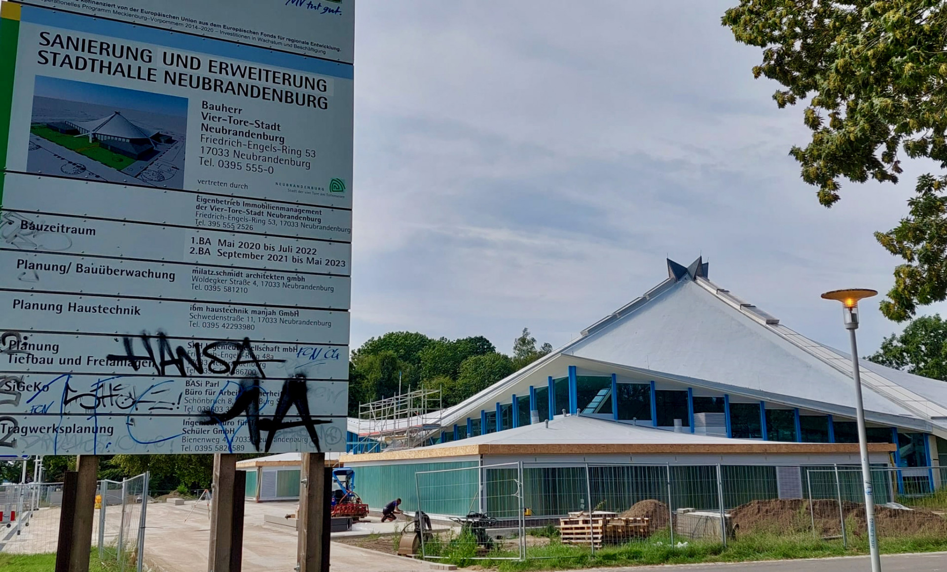 Die Kreisstadt Neubrandenburg kann auch teurer bauen als gedacht – aber das ist ja im Augenblick kein Wunder. Die Sanierung eines der wichtigsten architektonischen Highlights der Kreisstadt – der Stadthalle von Ulrich Müther unweit vom Tollensesee – wird rund eine Million Euro teurer als anfangs gedacht. Statt ursprünglich vier Millionen Euro wird die Erneuerung der Betonschalen-Konstruktion, die seit 2020 läuft, nach neueren Berechnungen wohl etwa fünf Millionen Euro kosten. Doch das Geld ist wohl gut angelegt. Der Architekt Müther hatte einen Sonderstatus in der DDR. Der Mann aus Binz schuf mit seiner Firma mehr als 70 auffällige Betonbauten, meist als Hyparschalen-Konstruktionen, die im Inland und auch im Ausland zu finden waren. Als bekanntestes Bauwerk gilt der „Teepott“ in Warnemünde.