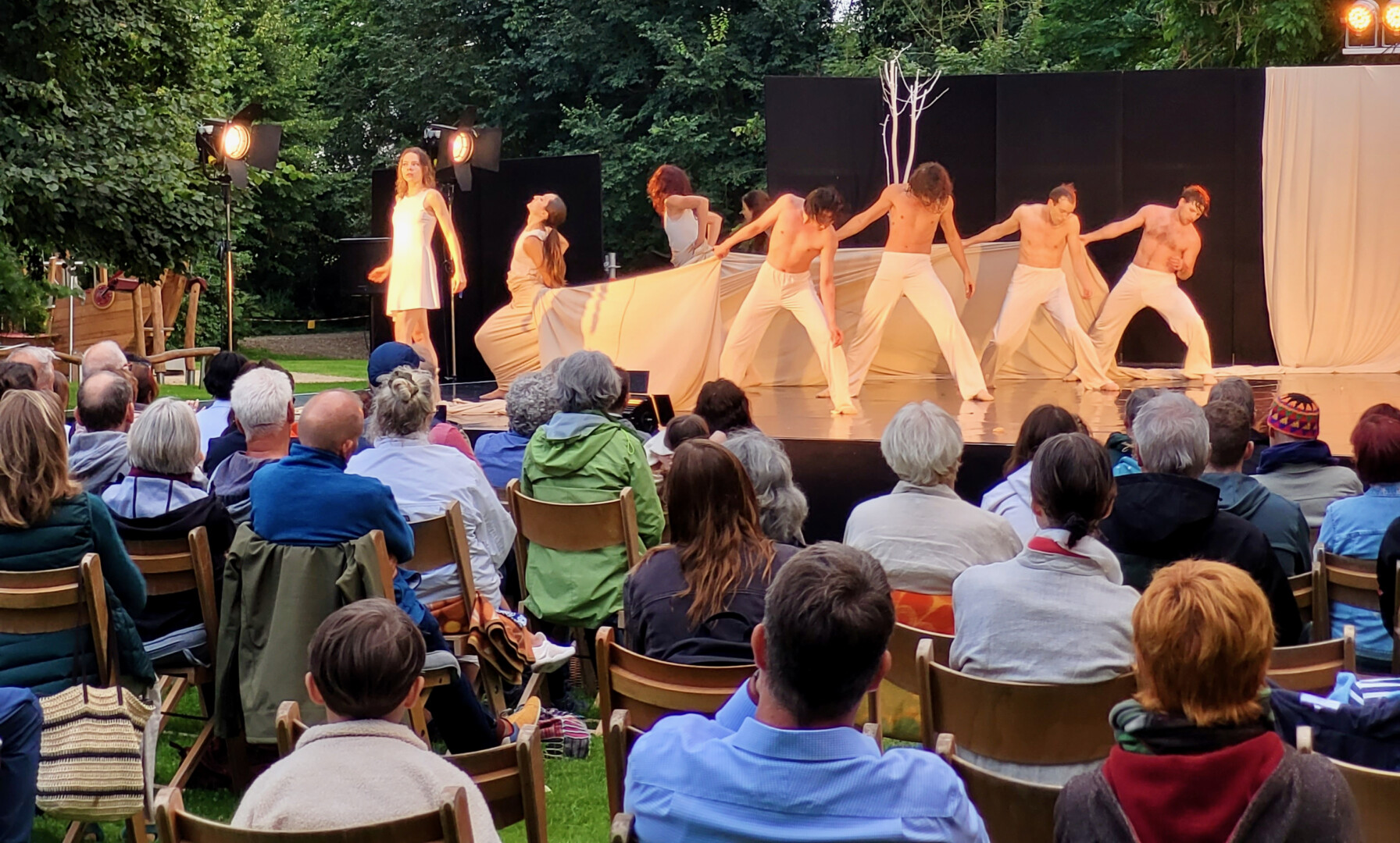 Mit der 99. Vorführung beendete die Deutsche Tanzkompanie gestern Abend ihre aktuelle Spielzeit mit dem „Tanzfest 2024“ im Park des Schliemann-Museums in Ankershagen. Die künstlerische und stilistische Vielfalt des renommierten und international besetzten Ensembles begeisterte alle Zuschauer. Präsentiert wurde ein großes und abwechslungsreiches Programm, das vom Pas de deux bis zu kraftvollen Gruppenbildern reichte. Dramatische Szenen, Tanzpoesie, feurige wie liquide Bewegungen und ebenso Champagner-launige Walzerklänge trafen auf zeitgenössischen Tanz.