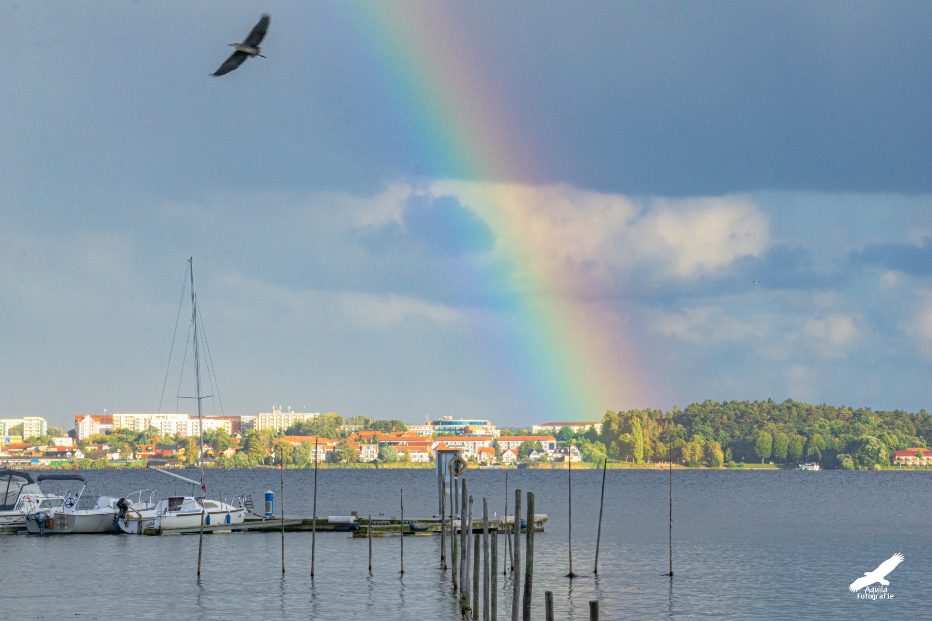 Der kurze Husch heute Nachmittag hat den Müritzer einen wunderbaren breiten Regenbogen beschert.