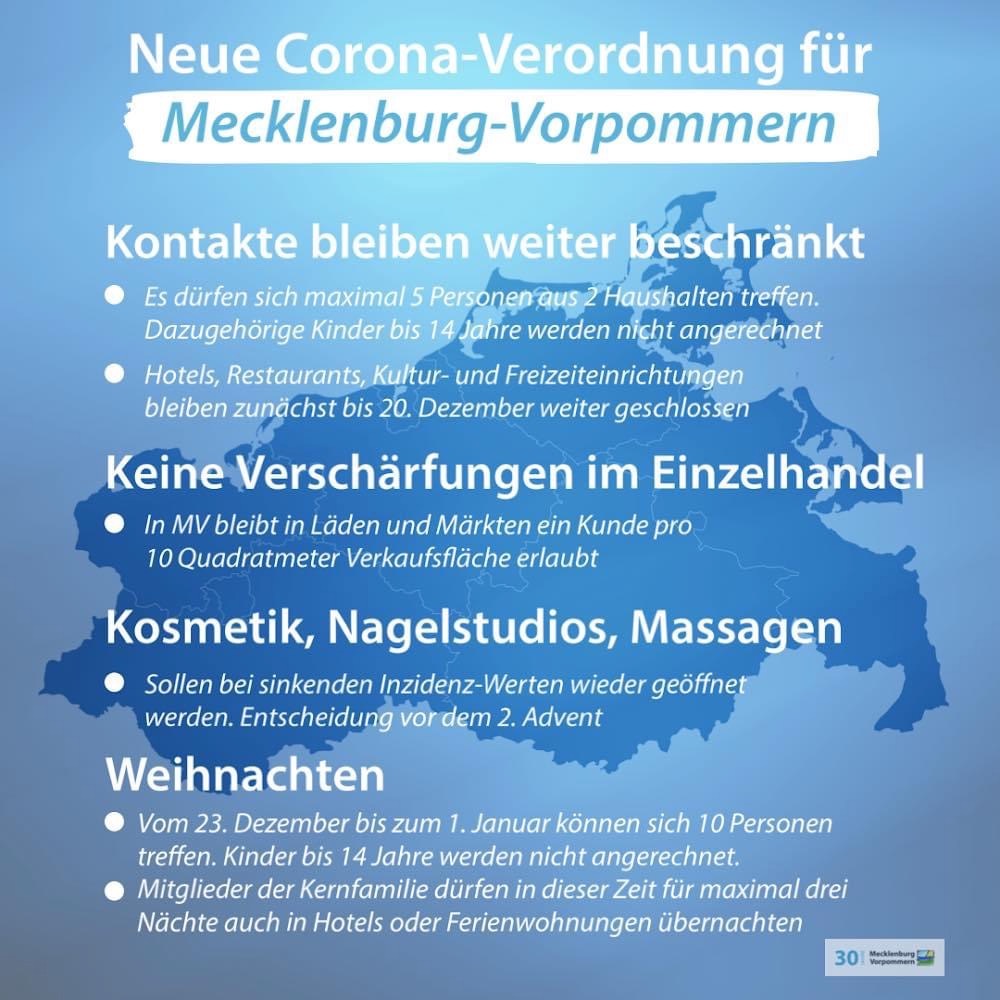 In Mecklenburg-Vorpommern tritt eine neue Corona-Verordnung in Kraft.